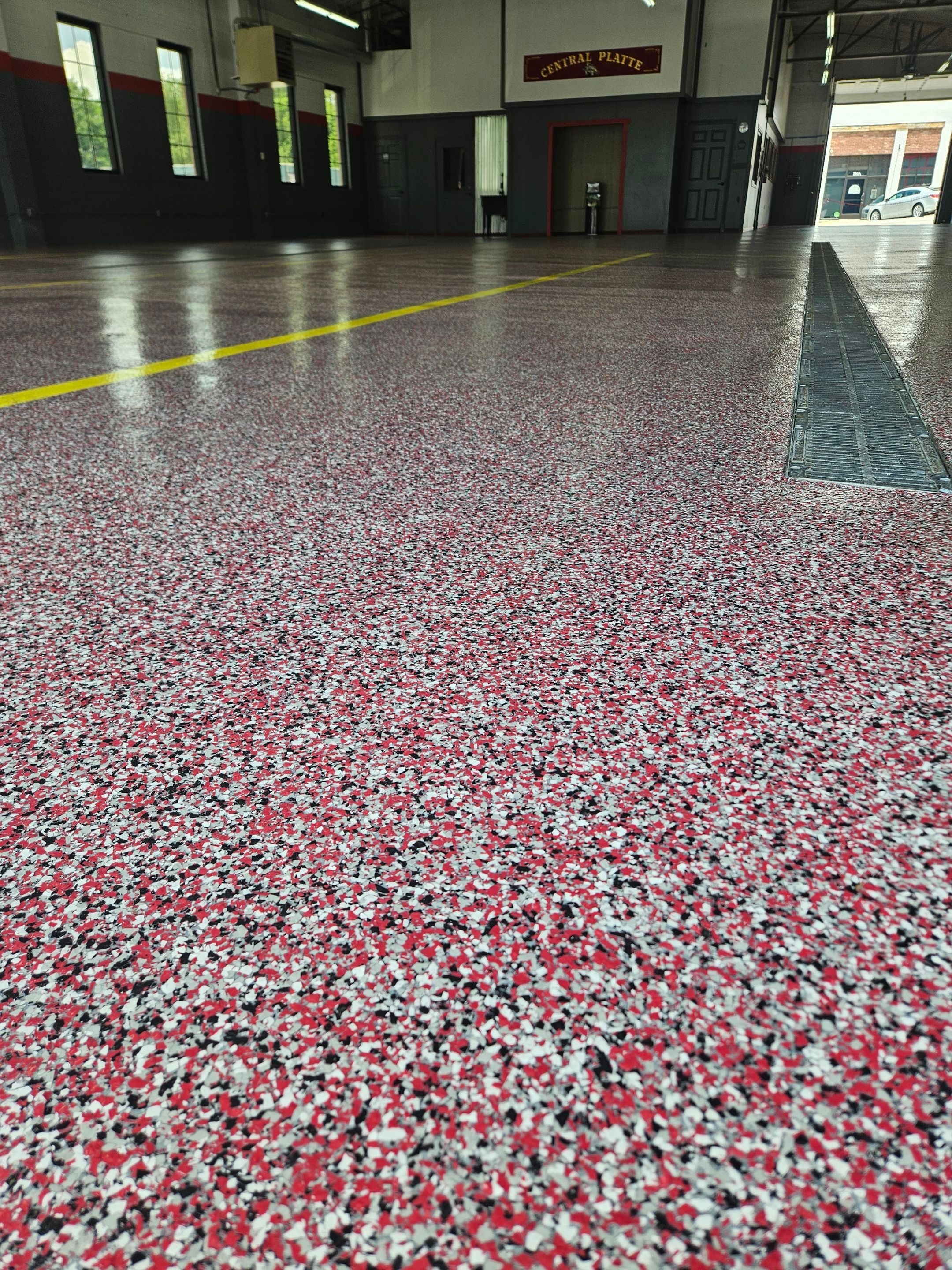 Making an old fire station look new and bright. The high strength industrial coating system will make cleaning and maintenance a breeze for years to come.