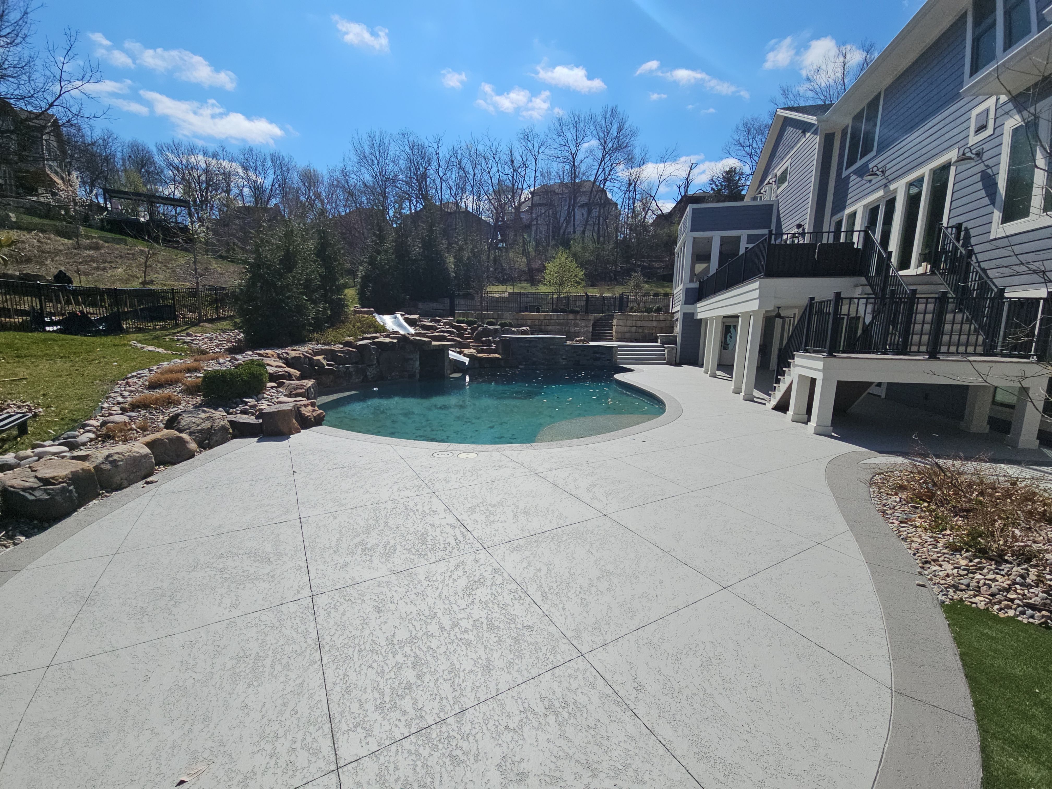 Breathtaking oasis for summer fun. This overlay with the main area of Tweed Grey and the border highlight of Smoke grey give this area sophistication to compliment the home exterior.