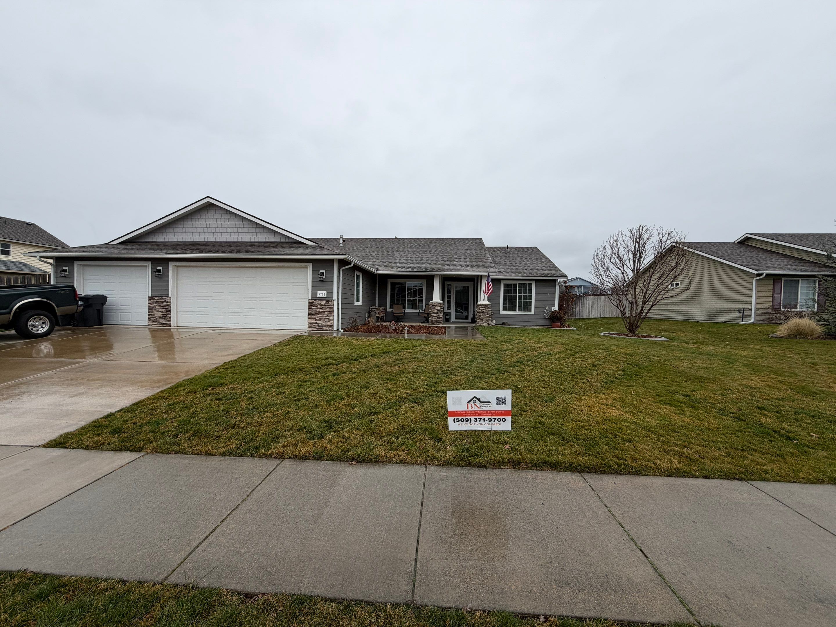 BN Covered ExteriorsFull siding replacement of old vinyl siding. Installed brand new James Hardie Color Plus lap siding in the color Aged Pewter. Added in accent gable in James Hardie Shake in the color Pearl Gray.
