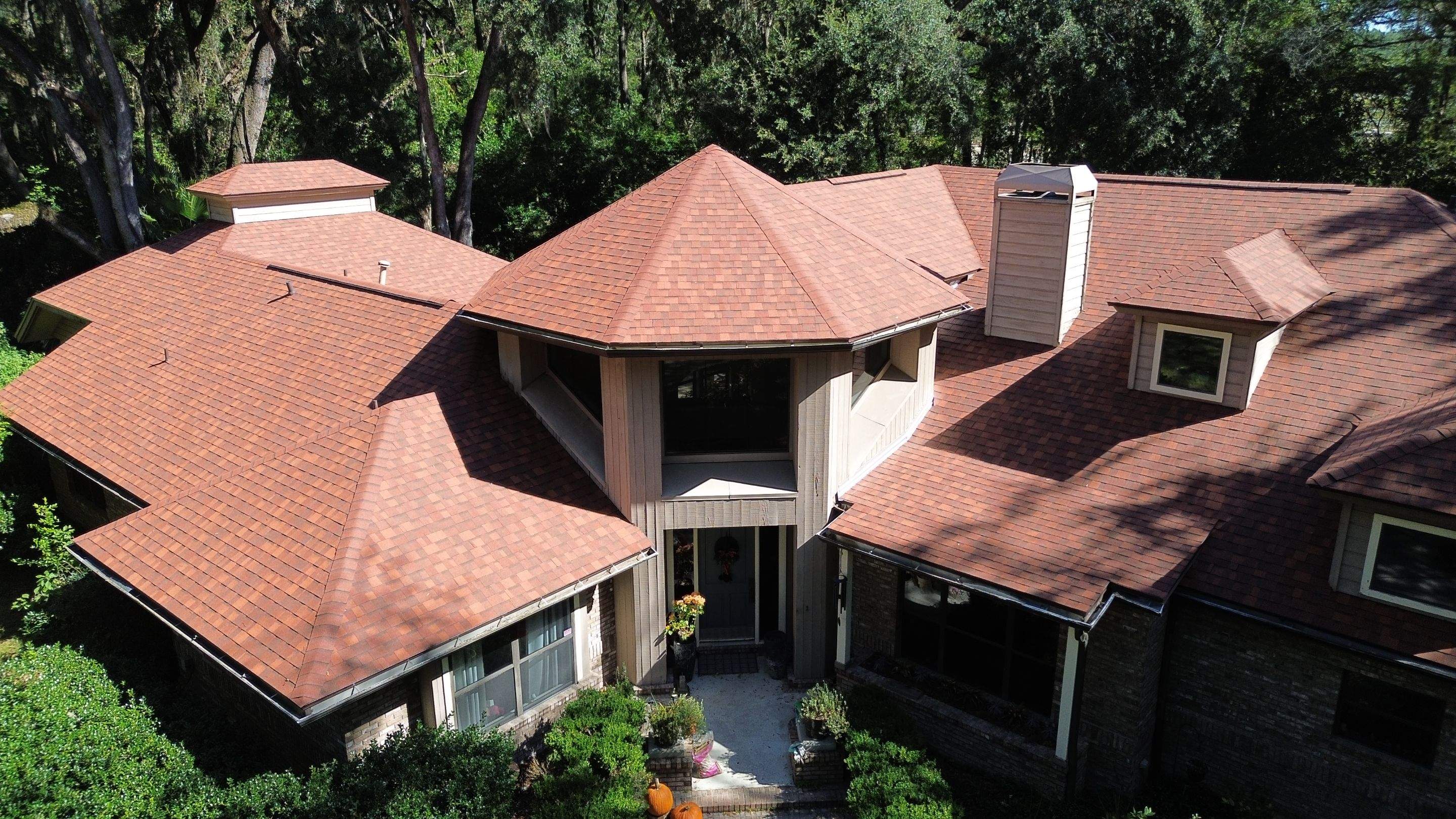 This roof stands out for its size and complexity, covering over 90 squares of surface area. The original roof dated back to 2008, and the new installation used Owens Corning Duration shingles in Terra Cotta to deliver both performance and timeless visual appeal. The brown drip edge, vents, and paint tied perfectly into the natural tones of the home’s exterior. One of the most distinctive design elements is the witches hat roof, a steep conical section that adds architectural character and improves water runoff in areas with tight roof angles. The raised platform sections, also known as dormers, break up the roofline to bring light into the upper rooms and help ventilate attic spaces. These features are not only aesthetic but also functional, contributing to proper airflow and energy efficiency. At 83 squares plus 33 feet of Owens Corning ProEdge hip and ridge, this installation required expert planning and execution. Every seam, ridge, and transition was handled with precision to ensure a perfect fit across the multiple roof levels. The Terra Cotta color brings warmth and contrast to the wooded surroundings, enhancing the home’s curb appeal from every angle. Brehm Roofing and Restoration delivers excellence on projects of every size, from detailed architecture to high square footage installations. Each project reflects skill, coordination, and the reliability homeowners expect from Florida’s trusted roofing team. https://maps.app.goo.gl/QHhf84HaJVJcpeiy7