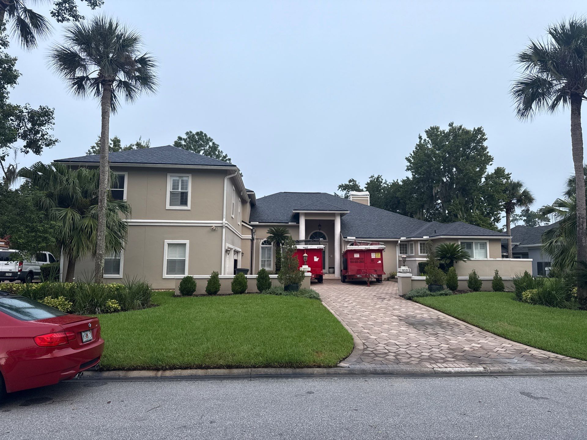 Brehm Roofing & Restoration recently completed a prestigious roof replacement on the famous TPC Sawgrass Golf Course in Ponte Vedra Beach, Florida. This incredible property sits along the water with a breathtaking view of the golf course. The project came to us through real estate investor Josh Sullivan, who referred the homeowner. Despite experiencing heavy rains during installation, our team completed the 85-square roof in just two days—a testament to both our efficiency and craftsmanship. The homeowner chose Owens Corning Duration shingles in Williamsburg Gray, finished with black drip edge and black accessories for a bold, seamless look. A unique challenge on this roof was a dead valley that had been causing water flow issues. To solve the problem, we installed a 2-ply modified bitumen system using CertainTeed Flintastic, creating a durable, watertight solution that will protect the home for years to come. This project highlights our ability to take on large, complex jobs in high-profile settings while delivering lasting results, even under challenging weather conditions. 📍 https://maps.app.goo.gl/QHhf84HaJVJcpeiy7