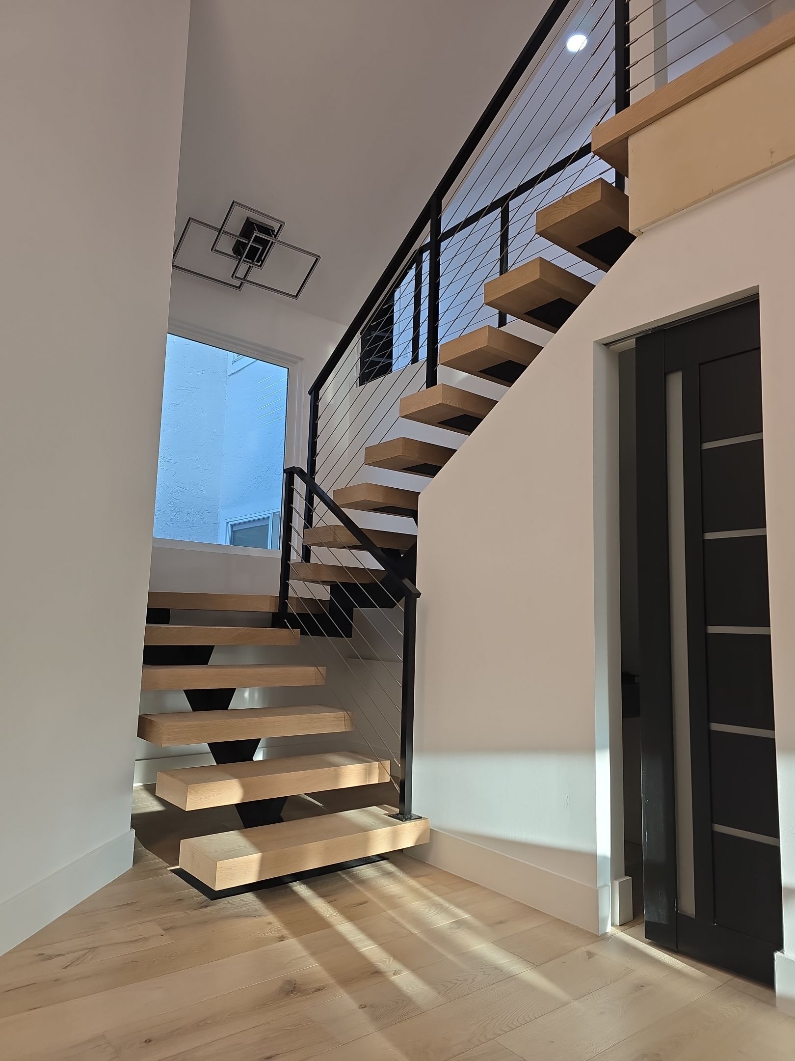 Interior Stairs, Interior Railing, Cable Railing, Steel Stair, White Oak