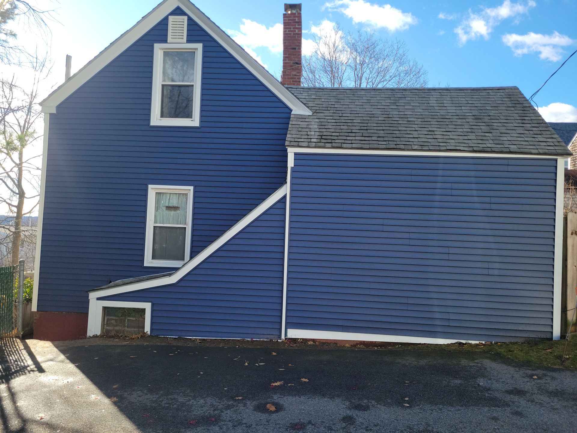 This Portland home received a full siding replacement along with targeted exterior rot repair by our team. The project included complete removal of the existing siding and underlayment, inspection of all exterior walls, and replacement of deteriorated or missing wood discovered during demolition. An additional layer of older siding was also removed where found. We completed the project with new CertainTeed Monogram vinyl clapboard siding, updated underlayment, and aluminum-wrapped trim at fascia, soffits, windows, and doors, restoring the home’s exterior and improving long-term durability and weather protection.