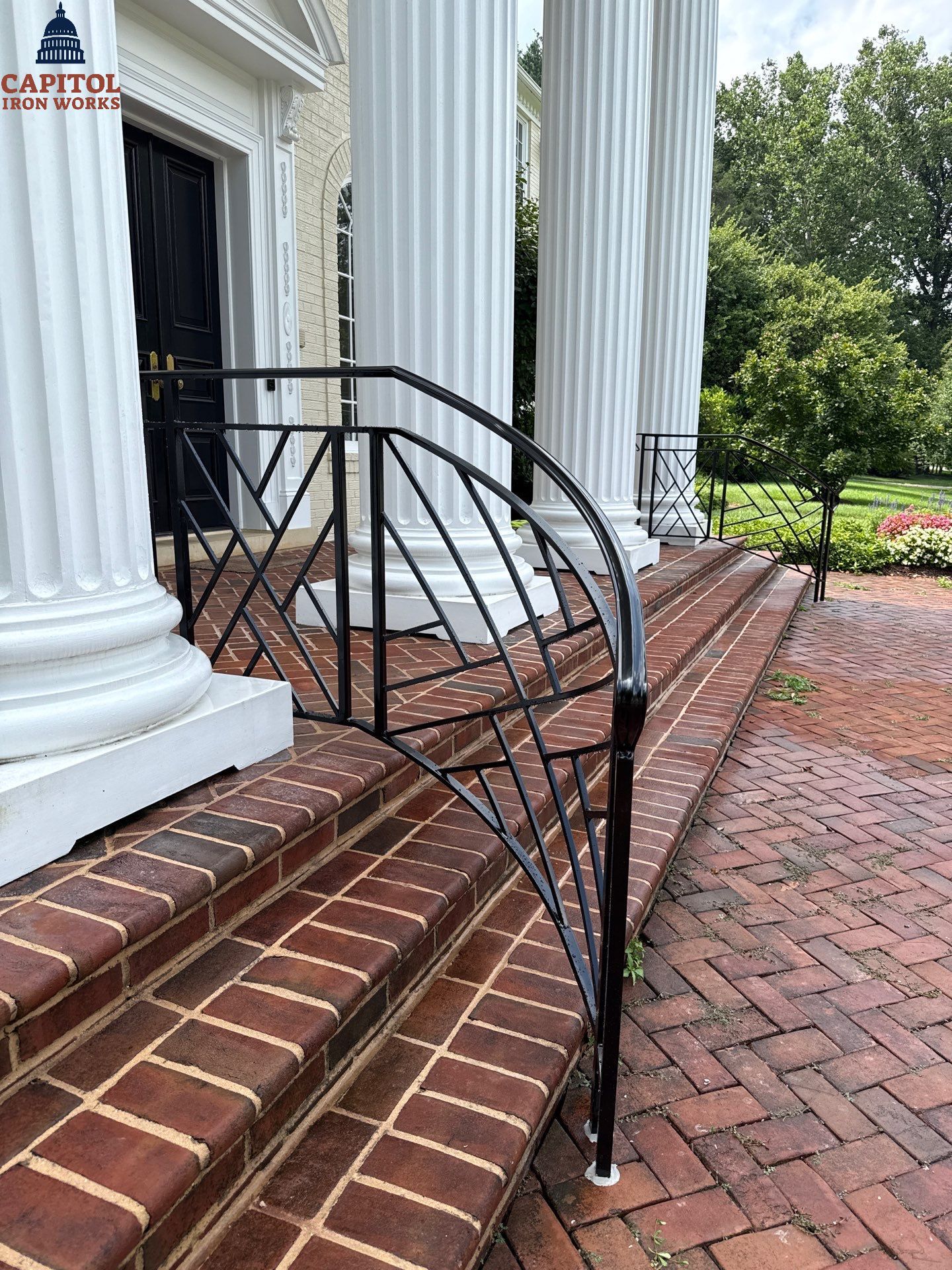 Capitol Iron Works completed the fabrication and installation of two new custom iron railings for a residential property located on Meadow Ln in Potomac, MD. This project focused on blending high-end decorative appeal with structural safety. Design Style: Traditional Chippendale-style design featuring intricate geometric patterns for a sophisticated architectural look. Structural Components: All posts are constructed from 1" x 1" Hot Rolled A-36 Steel Square tubing, providing a solid foundation. Infill Detail: The decorative pickets consist of 1/2" x 1/2" Hot Rolled A-36 Steel Square bars, while the horizontals utilize 1" x 1/2" x 1/8" A-36 Steel Bar Channel. Top Handrail: Finished with a robust 1-15/16" Steel Cover Rail for a comfortable and classic grip. Finish: The entire assembly is finished in a Black Matte Powder Coat for a sleek, premium look and superior weather resistance. The Problem We Solved The client needed to enhance their home’s exterior with a railing system that offered more character than standard vertical pickets. We provided a custom-fabricated Chippendale design that serves as a focal point for the property while ensuring full compliance with safety standards and long-term durability against the elements. This project is a great example of our custom metalwork capabilities in the Maryland, DC, and Virginia area. From structural integrity to complex ornamental design, our Gaithersburg-based shop delivers precision results tailored to each client's needs.