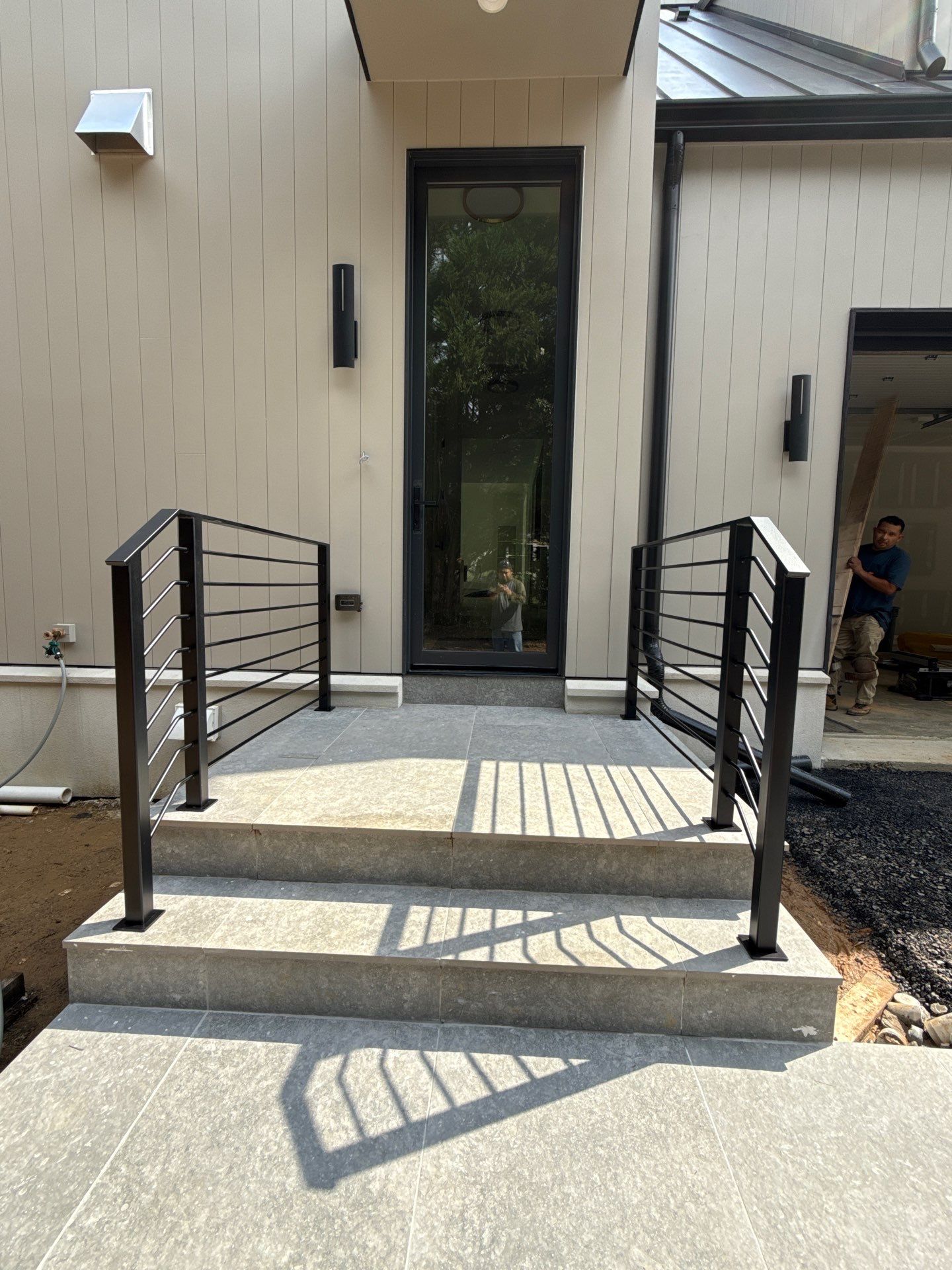 Capitol Iron Works recently completed the fabrication and installation of this sleek, contemporary railing system, designed to provide a minimalist and open feel to the home's exterior. Moving away from traditional vertical pickets, this project features a sophisticated horizontal design that complements modern architectural styles in the Maryland, DC, and Virginia regions. Project Highlights & Materials: Minimalist Aesthetic: The system utilizes a clean, horizontal line profile that enhances views and provides a high-end, custom look. Structural Integrity: All support posts are engineered from durable square steel tubing, ensuring a rock-solid foundation for the entire span. Precision Fabrication: The top rail is crafted from solid steel flat bars, providing a smooth, low-profile gripping surface. Horizontal Infill: The balusters are made from solid round steel bars, meticulously spaced to meet safety codes while maintaining an airy, modern feel. Classic Finish: The entire assembly is finished in a standard architectural black paint, offering a timeless look that protects the metal from the elements. This project is a perfect example of how Capitol Iron Works combines structural steel expertise with ornamental design. Whether you are looking for industrial-inspired interiors or modern exterior upgrades, our Gaithersburg-based shop delivers precision-crafted metalwork tailored to your home’s unique style.