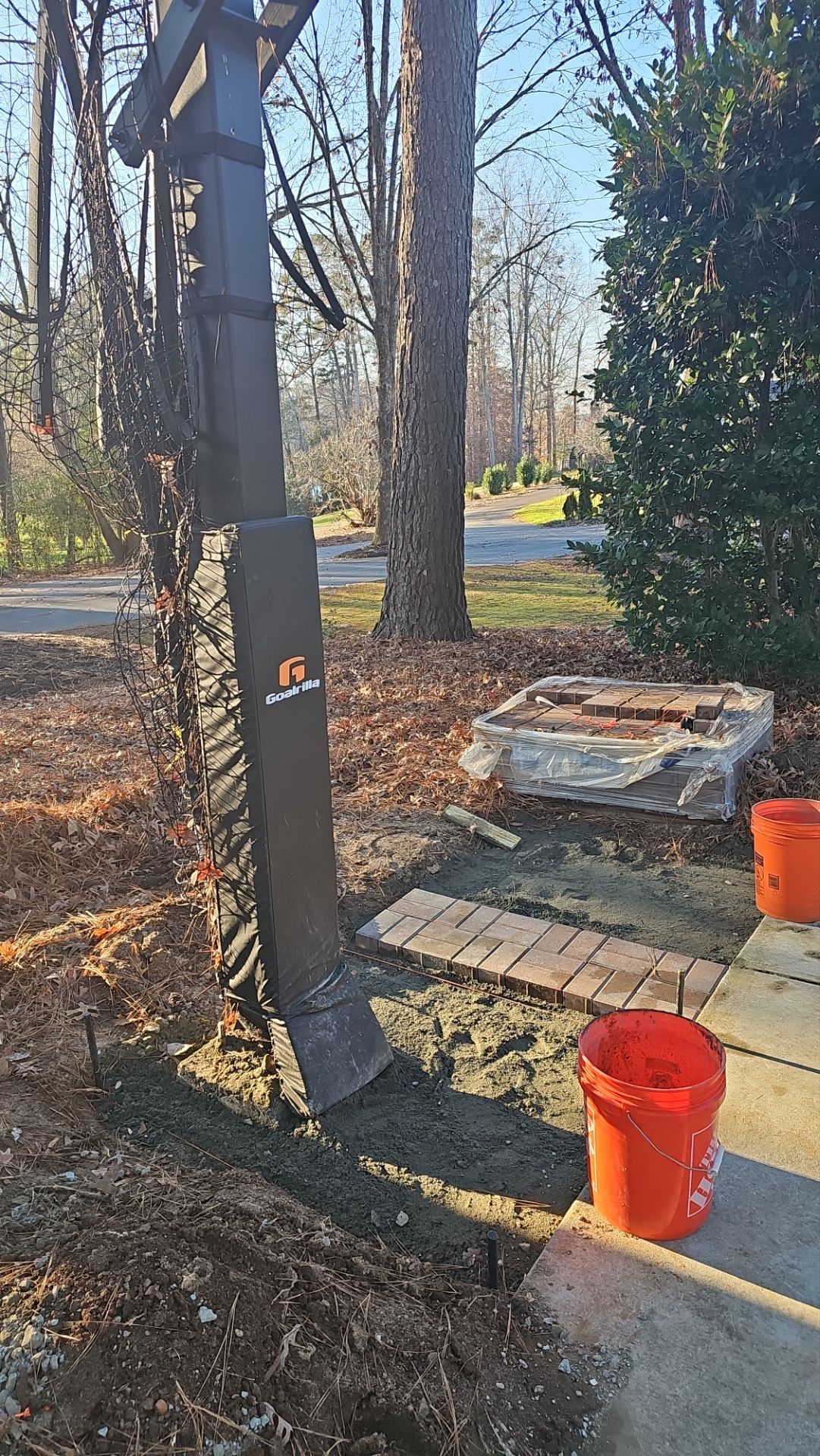 This project was custom-designed by Carolina-Metro Landscape to meet the client’s vision and functional needs. Upon design approval, our team moved seamlessly into execution. Precise elevations were established using professional leveling equipment, followed by the installation of ABC road base to ensure long-term stability. The base was compacted to 98% compaction, providing a solid foundation for the installation. Once final grades were confirmed, a screening layer was applied to prepare for the travertine placement. The finished walkway features premium travertine stone complemented by matte black pebbles, creating a clean, high-end aesthetic. The result is a durable, elegant walkway that enhances both the beauty and value of the property.