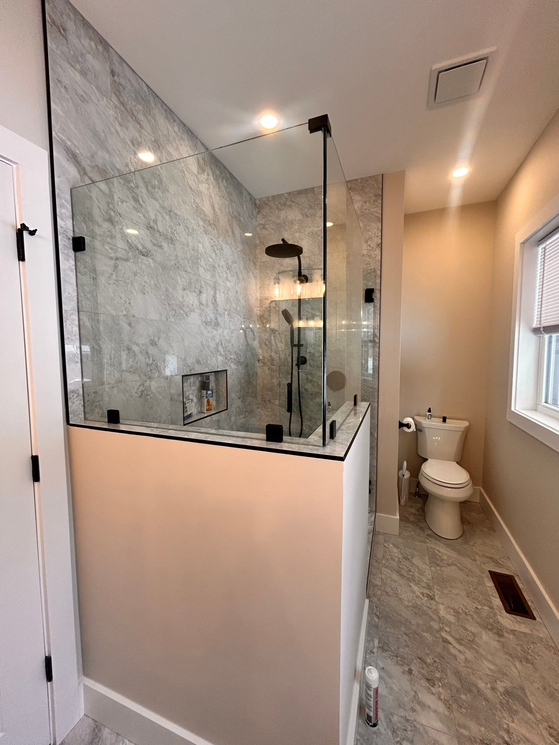 🚿 Frameless Shower Enclosure with Matte Black Hardware Experience the perfect blend of style and durability with this newly installed frameless shower enclosure. Crafted from 3/8" Clear Glass enhanced with ShowerGuard for lasting clarity, and accented with bold Matte Black hardware by CRL, this installation delivers a sleek, modern aesthetic and a flawless finish—built to elevate any bathroom space.