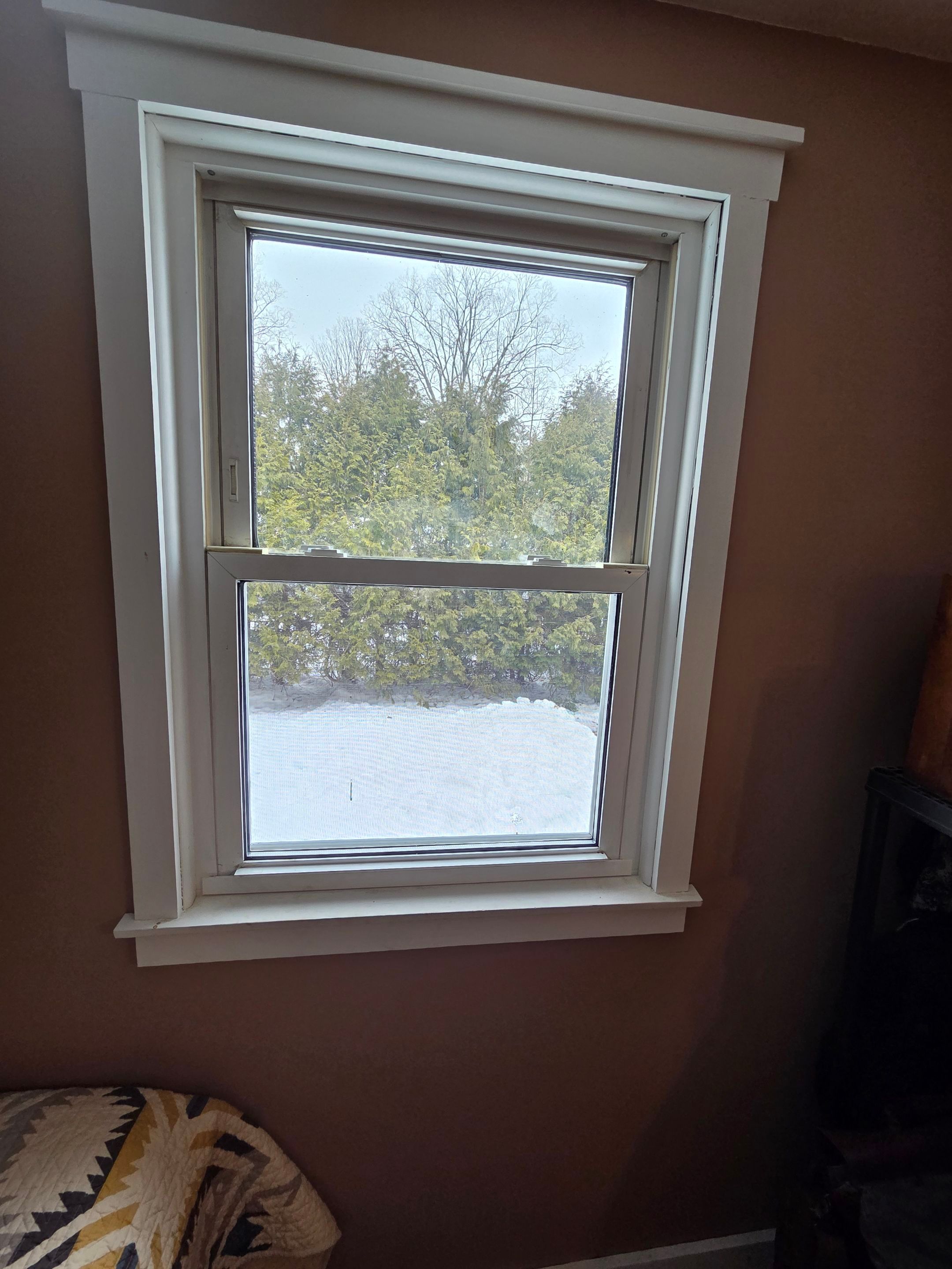 We replaced the damaged glass in the lower sash of this vinyl double‑hung window with a custom‑fabricated 25 1/16" x 19 1/16" x 3/4" Low‑E Annealed Insulated Unit, designed with a narrow band to match the original profile. Expertly installed for long‑lasting clarity, efficiency, and performance.