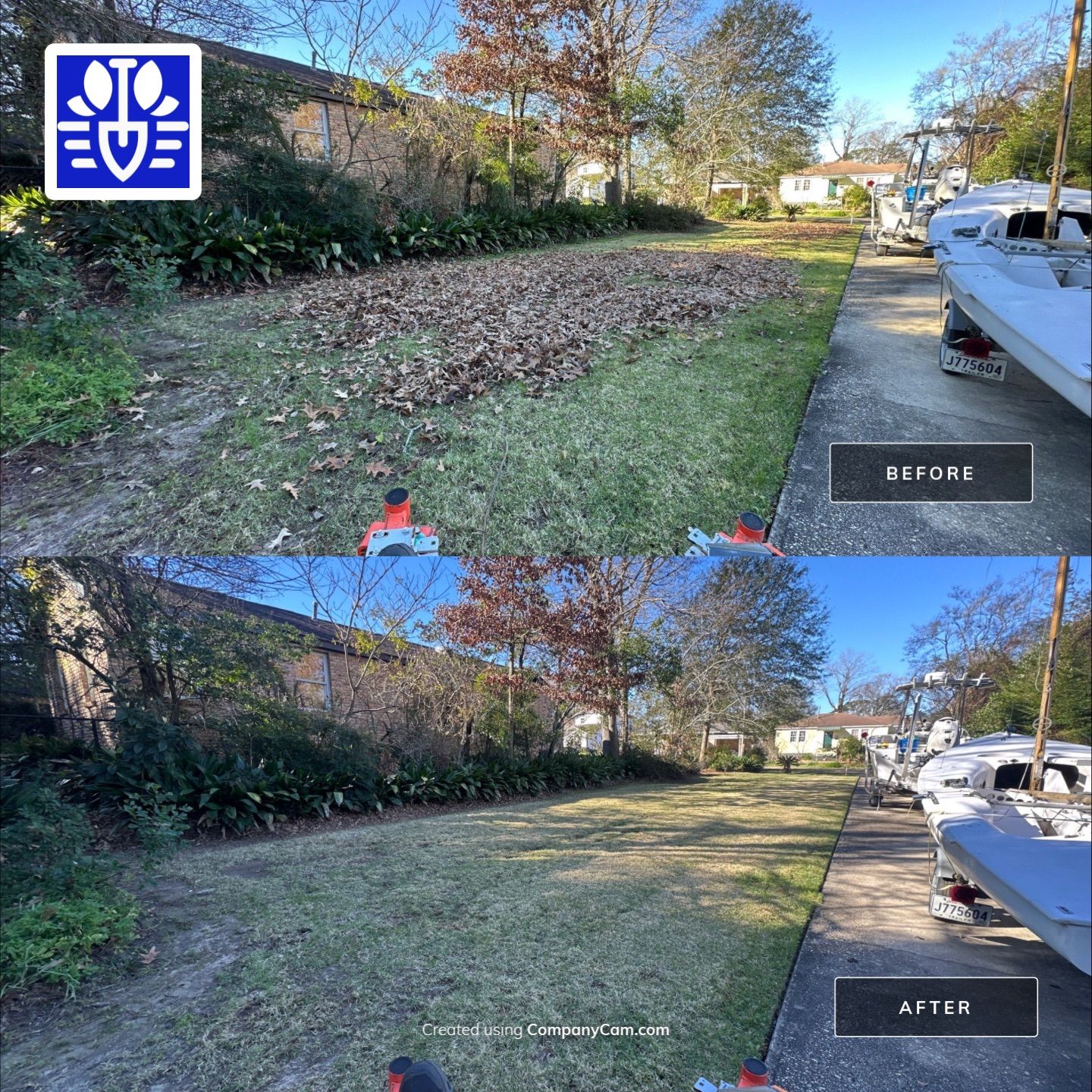 WINTER SERVICES: FULL LEAF REMOVAL. Before: Leaves covered turf, landscape areas, and walkways. After: Property fully cleared and brought back under control. ✅Full-property leaf removal ✅Turf and hard surfaces cleared ✅Clean winter finish, debris removed CutScape is licensed and insured. Request your quote at CutScape225.com. 🍀(LICENSE #25-4846)🍀