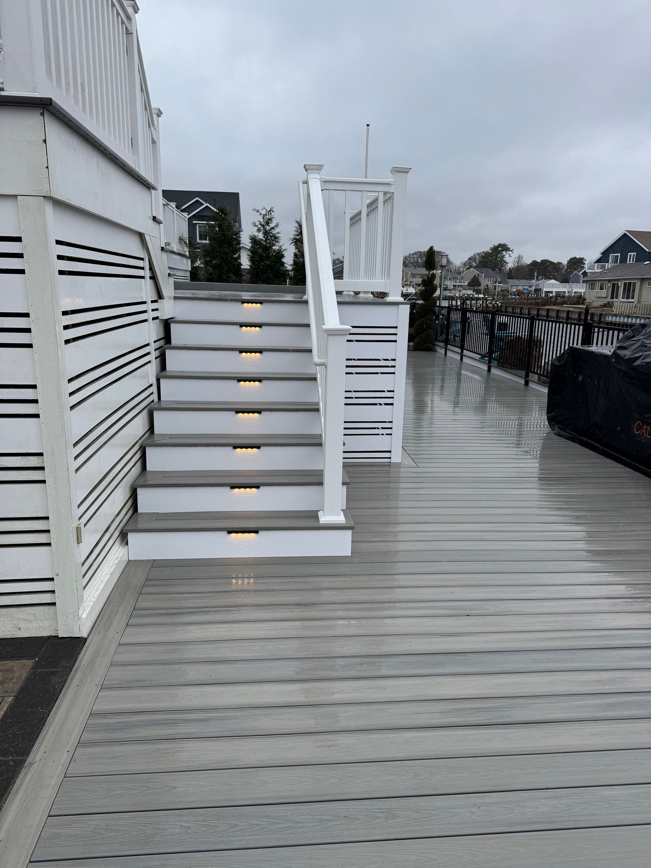 Deckorators Venture - Color Saltwater, White Vinyl Railings with white aluminum balusters, New Deck