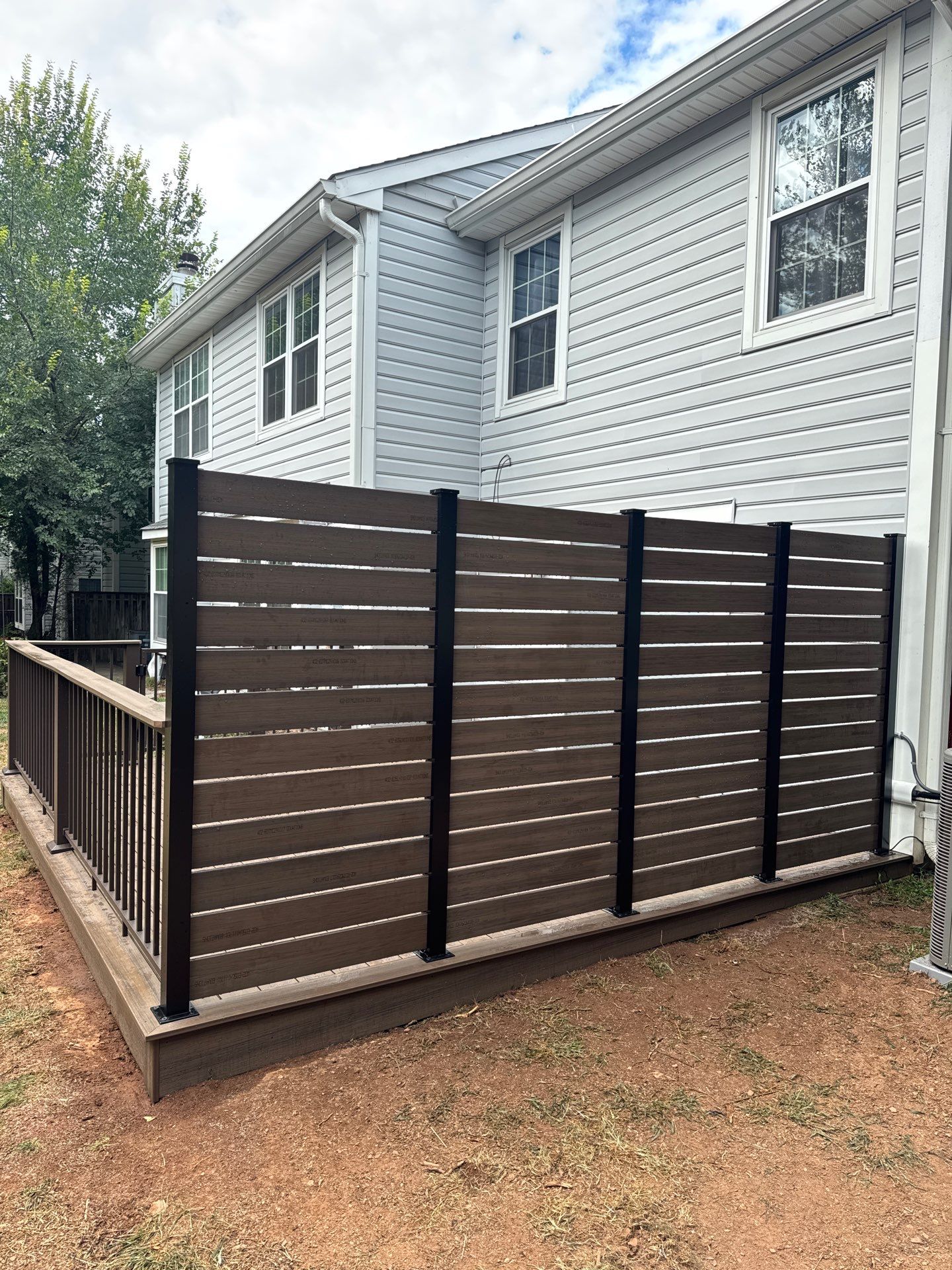 Deckorators Voyage - Color Khaya, Horizontal Decking Privacy Wall, RDI Avalon Brown Powder Coated Aluminum Rails, New Deck