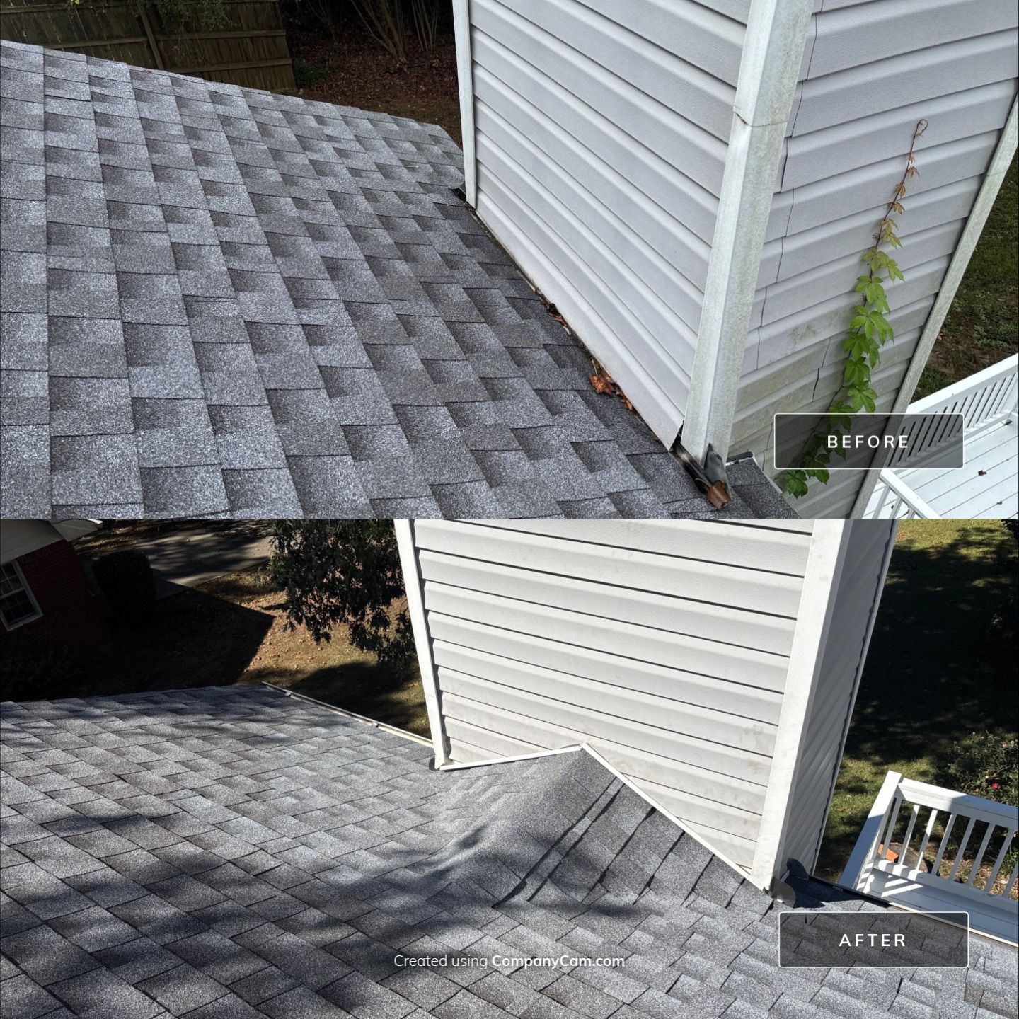 A client who had recently purchased the property, and whose roof had been replaced months earlier, already had a leak. They contacted us because they had seen our videos on social media. We found that the chimney was very wide and that it was necessary to create a cricket so that water would not accumulate in the flashing where the leak was. We provided the estimate, and she authorized the necessary repairs.