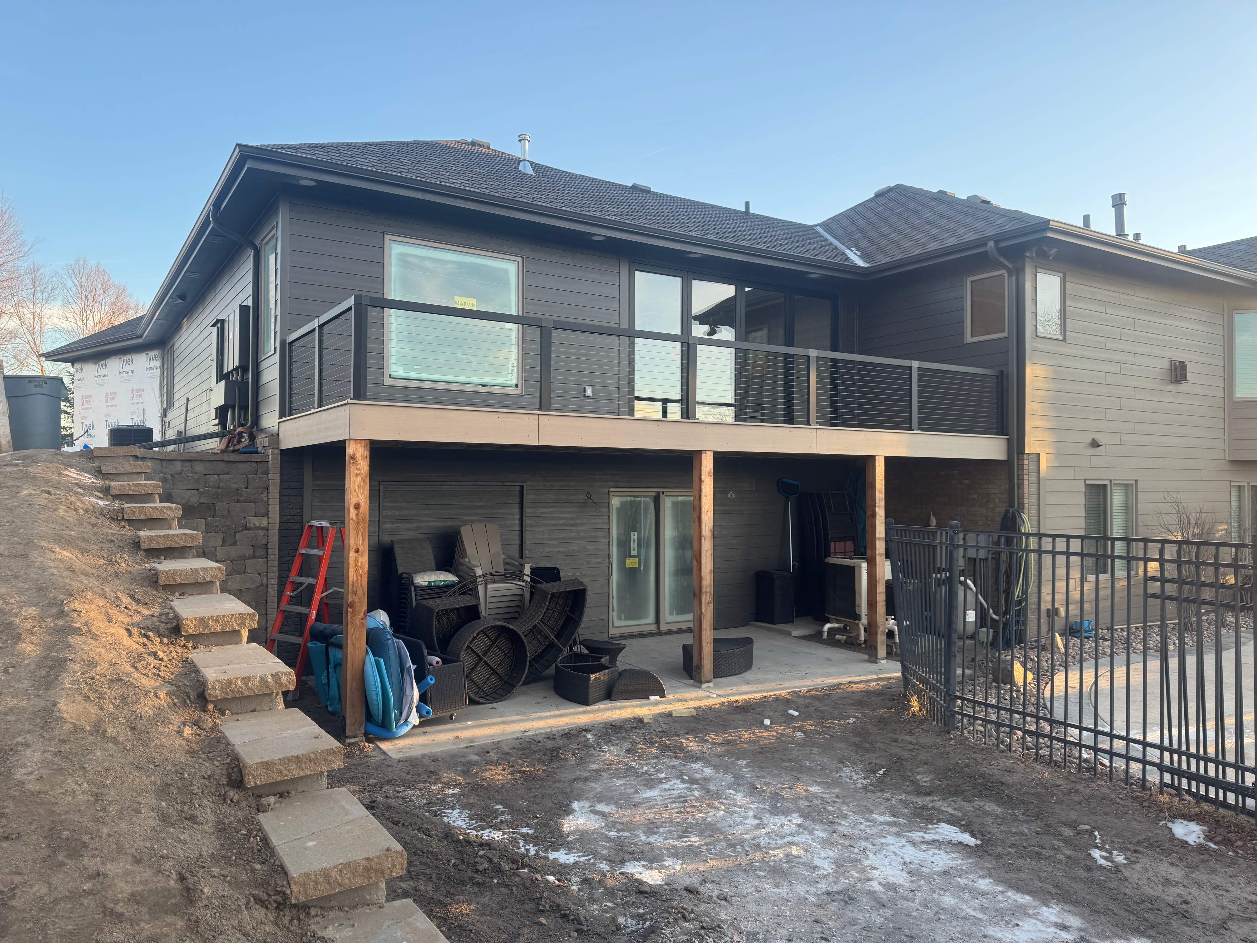 Pvc decking with an aluminum cable railing