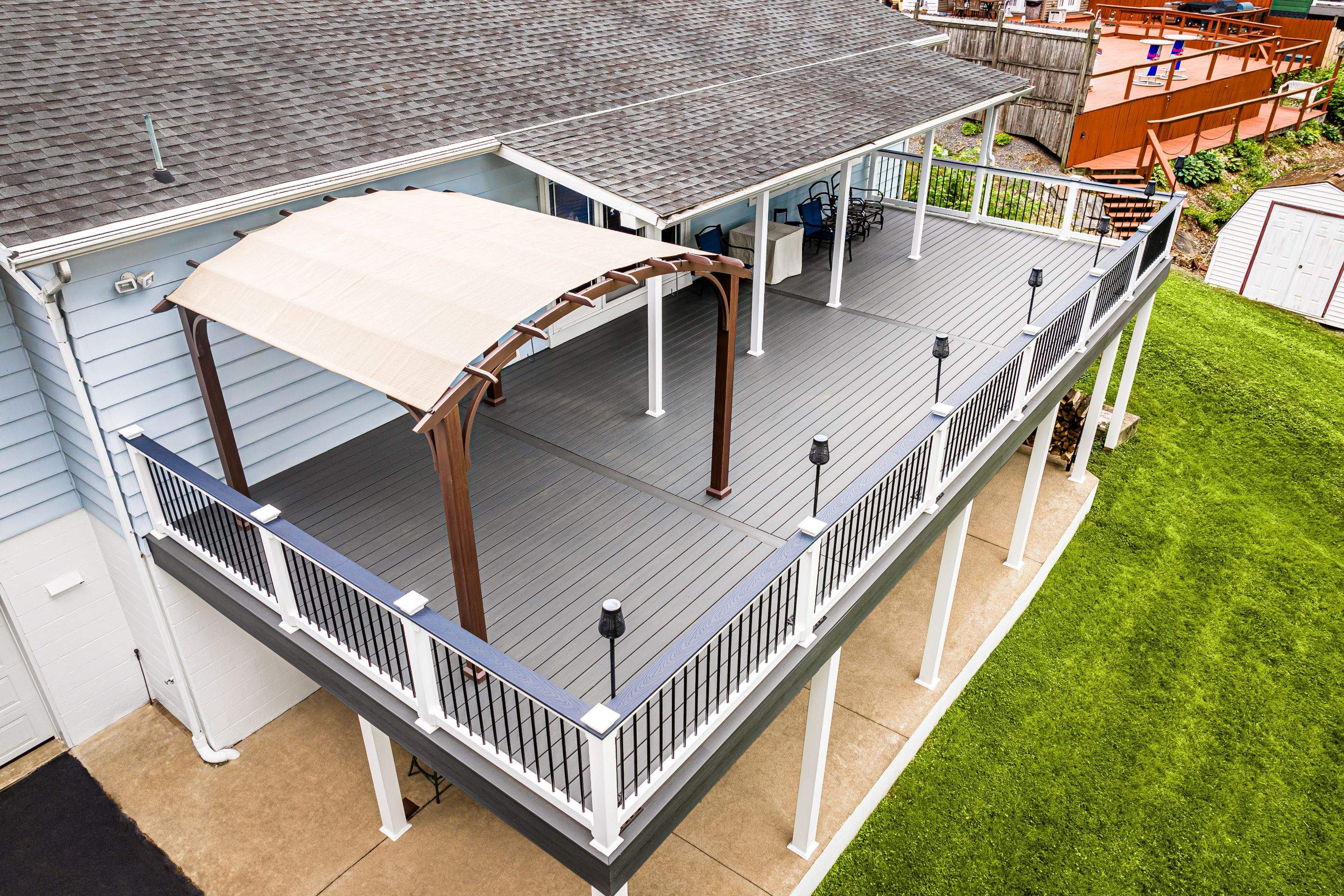 We built this deck using treated lumber then put trex deck boards on, also installed railing with drinkrail