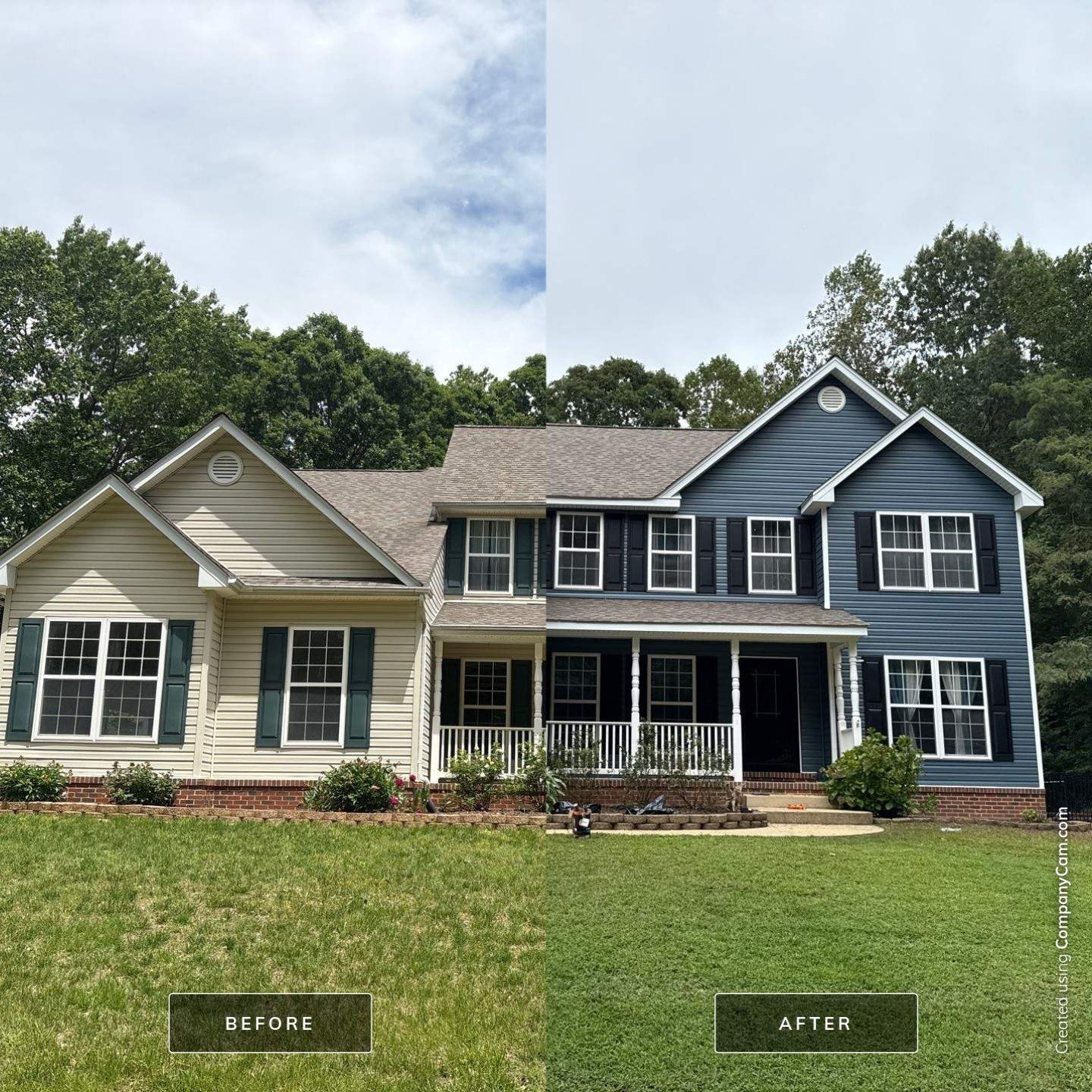 Vinyl - CertainTeed Main Street, Pacific Blue Siding Color, Colonial White Trim Color, Siding Installation