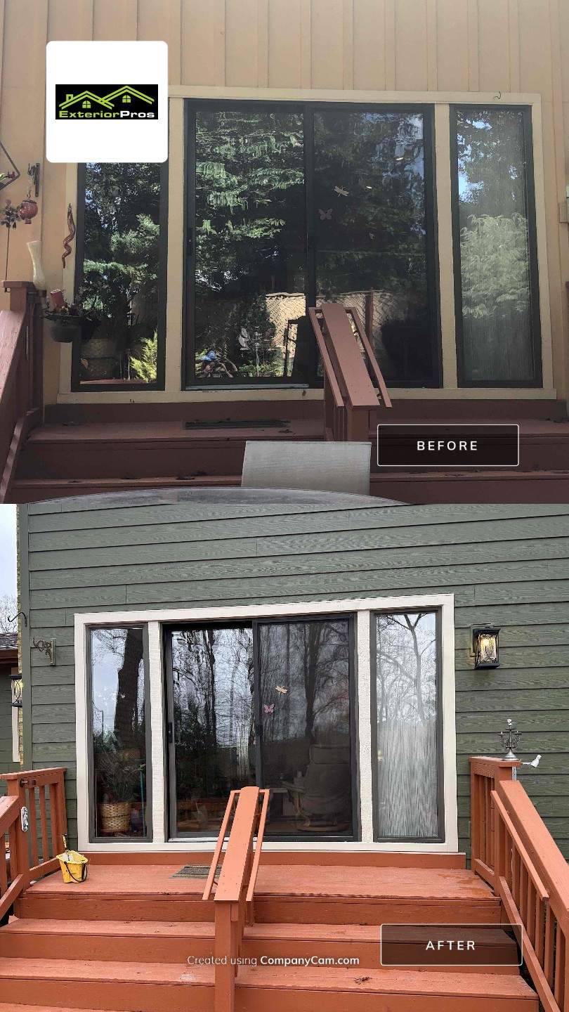 Mountain Sage Siding Color, Mountain Sage Trim Color, JH 4x10 Cedarmill Panel, JH 8.25x12 Cedar Mill Plank, Navajo Beige Trim Color, Siding Installation, Mountain Sage Siding