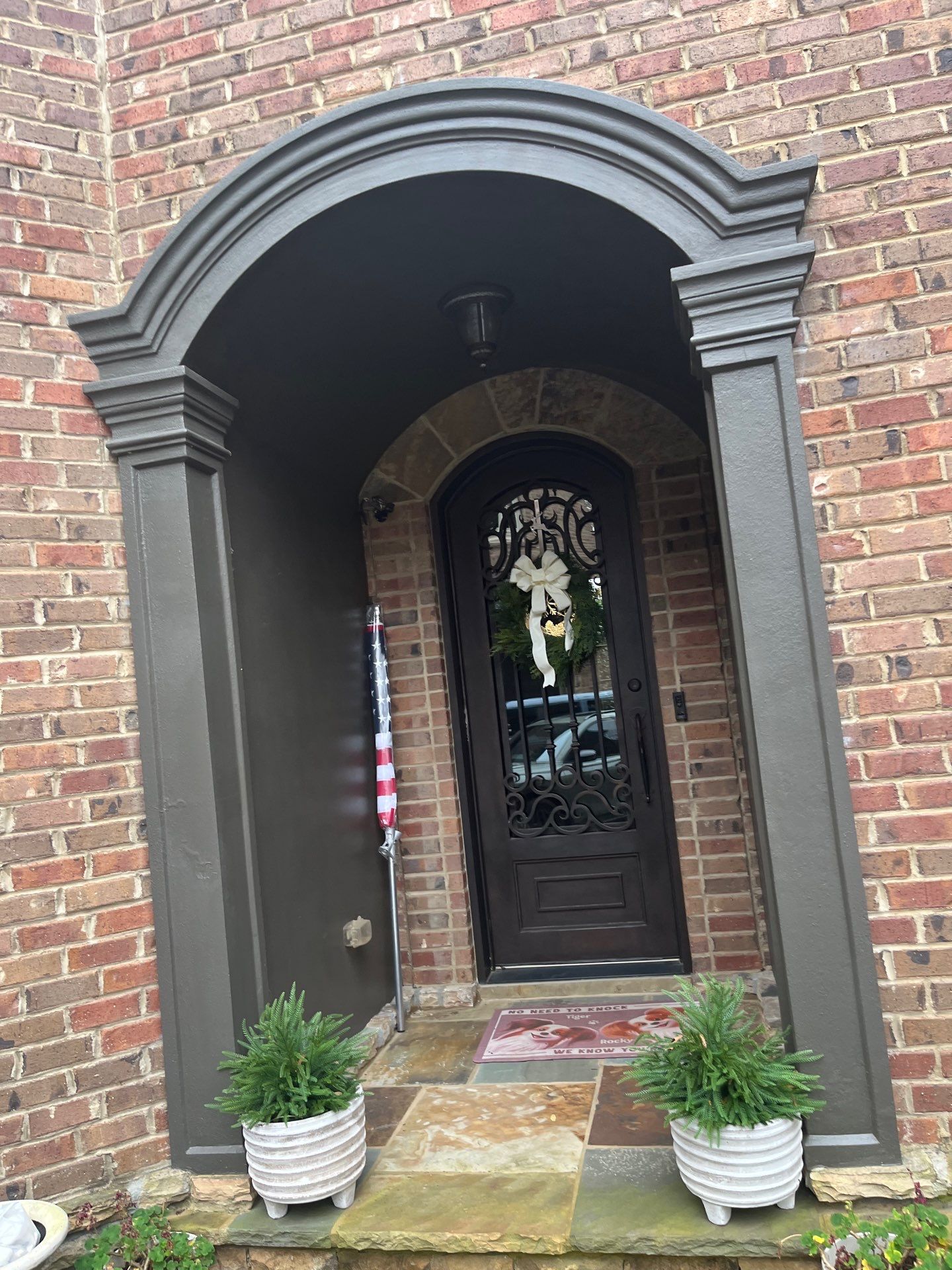 This exterior painting project in Alpharetta refreshed a stone home with repainted trim, shutters, and doors. The patio and outdoor living areas were also updated, enhancing contrast, curb appeal, and cohesion between the home’s exterior and outdoor spaces.