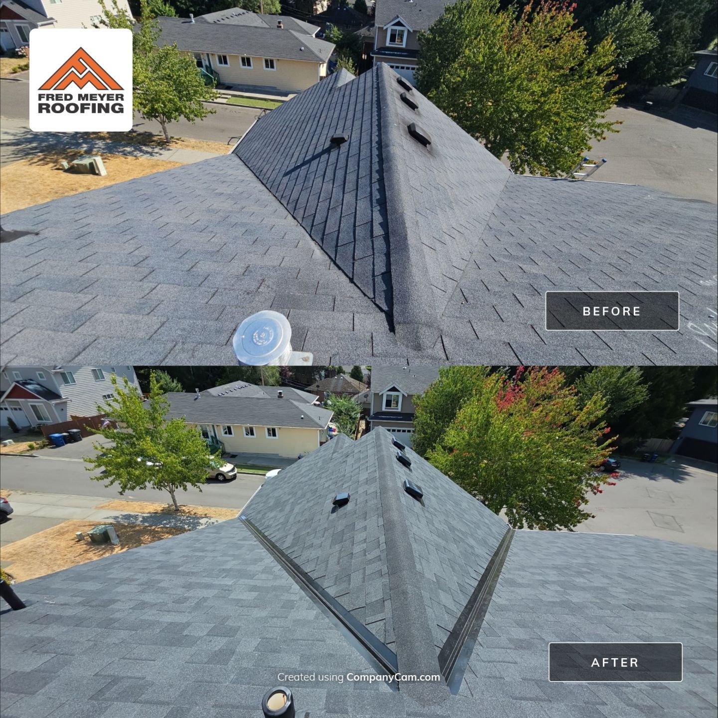 A worn-out roof was in need of a reliable and stylish solution. We completed a re-roofing project using Malarkey Vista shingles in Midnight Black, ensuring durability and aesthetic appeal. Additionally, we provided a roof certification to guarantee its integrity for years to come.