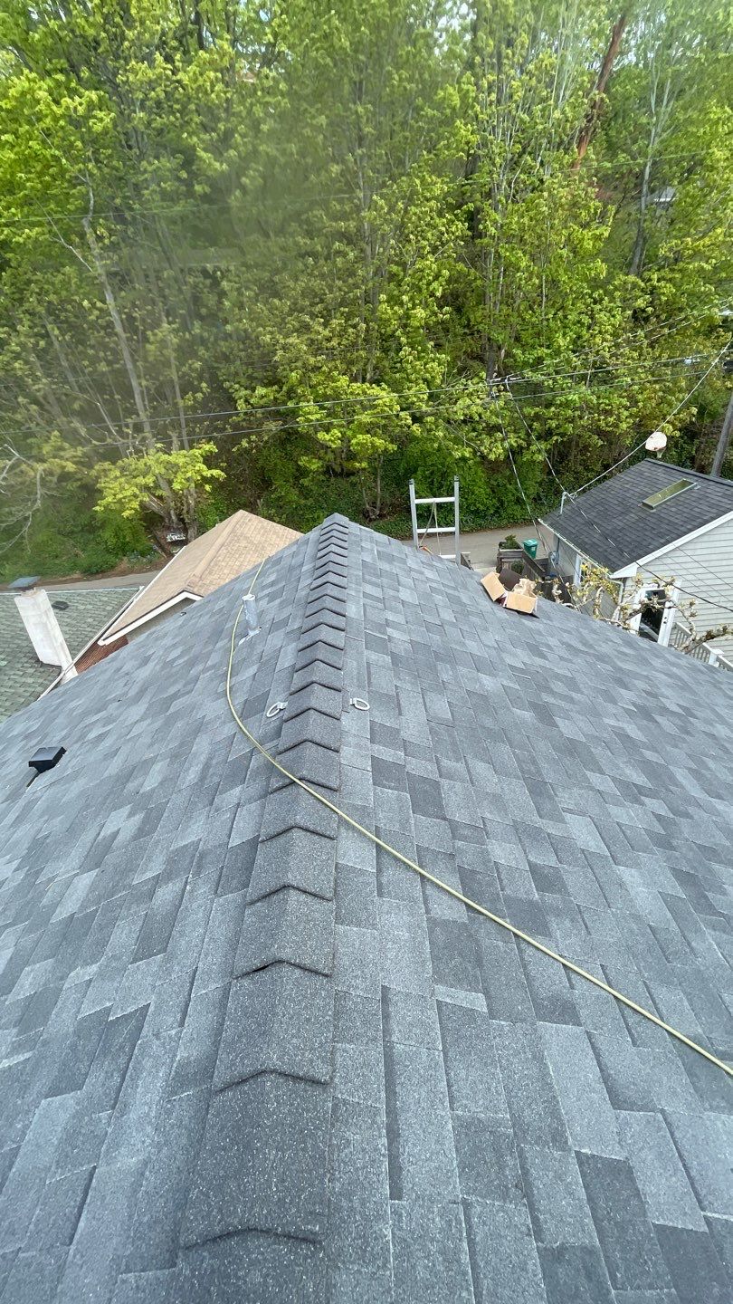 A worn-out roof was in need of immediate attention; we replaced it with premium Malarkey Legacy architectural shingles in Midnight Black. To enhance ventilation, a ridgeline ventilation system was installed, ensuring optimal airflow. Additionally, we topped it off with EZ Ridge high-definition ridge shingles and conducted a roof certification to affirm the roof's long-term integrity.