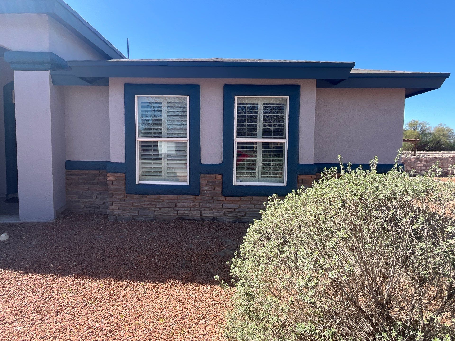 Exterior painting; stucco repair, prime and paint. Trim SW 7620 Seaworthy Body SW 6003 Proper Gray