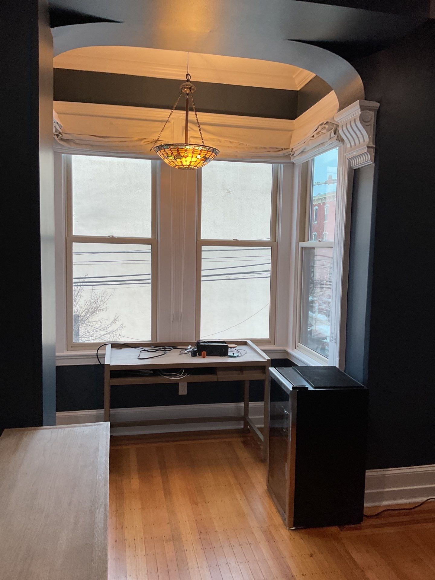 This project was all about creating a space that feels intentional, energized, and ready for real work. Our crew, led by Jose S, refreshed a second floor home office with rich color and detailed preparation that completely changed the feel of the room. Interior Highlights Office Walls and Closet: The walls and large closet were fully prepped, patched, and sanded before painting. The space was then finished in Benjamin Moore Blue Note 2129-30 (eggshell), a deep, modern blue that adds focus and personality without overwhelming the room. Multiple coats were applied to achieve full, even coverage and bring out the depth of the color. Surface Preparation: Prior to painting, all walls were primed with latex primer to ensure proper adhesion and a smooth final finish. This extra step was key in achieving a rich, consistent result across the entire space. Detail Work: Switch plates, vents, and hardware were removed or protected, and all cracks and nail holes were addressed before painting. The final result feels clean, polished, and thoughtfully finished from corner to corner. Preparation and Craftsmanship This project followed Groovy Hues’ No Liquid Rule, with floors protected, furniture moved and wrapped, and all prep completed before paint ever came out. Walls were sanded using dust controlled systems, primed, and painted with multiple coats of premium Benjamin Moore products. Jose completed a final walkthrough to ensure smooth coverage, clean lines, and a space that feels complete and ready to use. ✨ This office refresh shows how bold color, paired with proper prep, can turn a single room into a space that feels purposeful and inspiring.