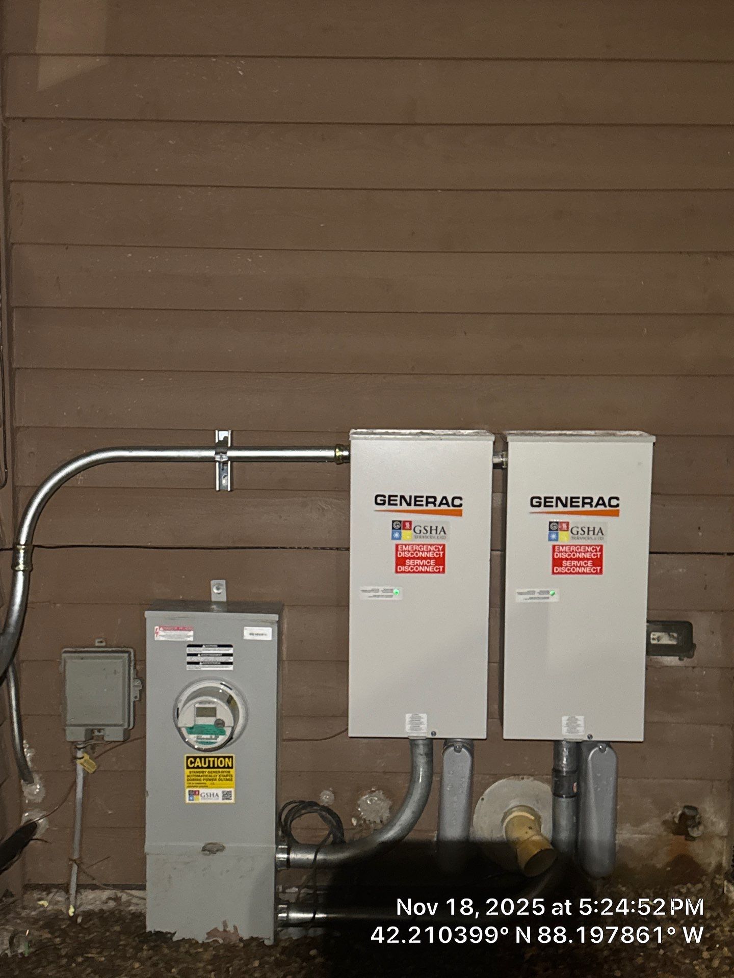 Generac 26kW Standby Generator Installation w/ Dual 200A Transfer Switches – Cary, IL | GSHA Services, LTD