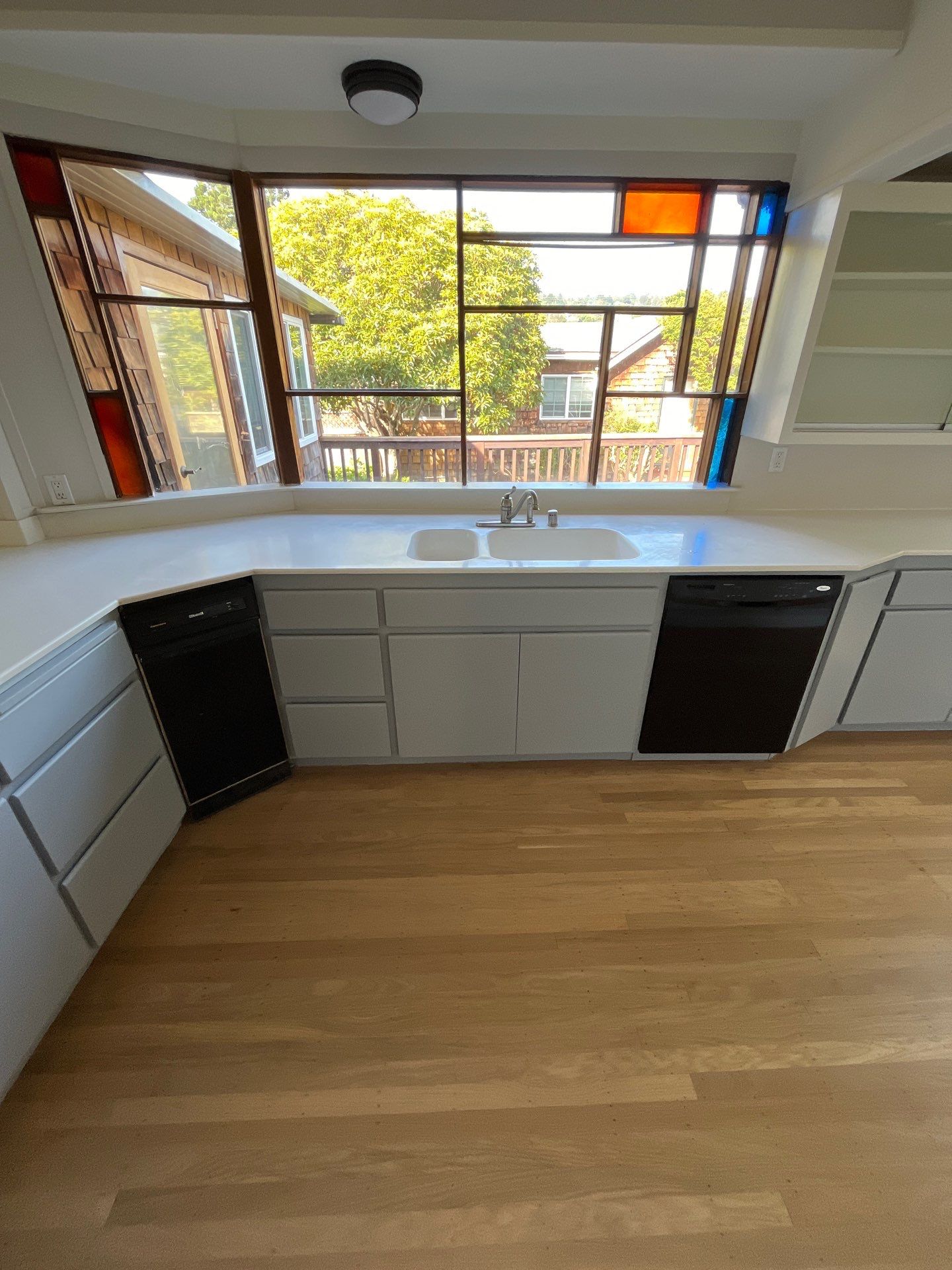 This beautiful house in El Cerrito was a comprehensive project where we handled the interior, exterior, and cabinets. Here’s a breakdown of what we did: • Duration: The project took approximately 18 days to complete. • Scope of Work: Full painting of the interior, exterior, and cabinets. Exterior Work: • Trim Revival: We revived the trim around the exterior of the house, ensuring a fresh and clean appearance. Interior Work: • Crack and Gap Fixing: We meticulously fixed all cracks and gaps. • Trim Sanding: All trim was sanded to achieve a smooth finish. • Painting: We applied a nice coat of paint to the ceilings, walls, trim, and closets, resulting in a refreshed and cohesive look. Cabinet Work: • Oak Cabinets: Working with oak cabinets was particularly challenging due to the need to fill the wood grain. • Grain Filling: We employed several methods to ensure the grain was properly filled, resulting in a smooth finish. • Final Result: The cabinets now have a flawless, smooth finish that enhances the overall aesthetic of the kitchen. It was a pleasure to work with such an amazing client on this project. The transformation is stunning, and we are proud of the high-quality results achieved.
