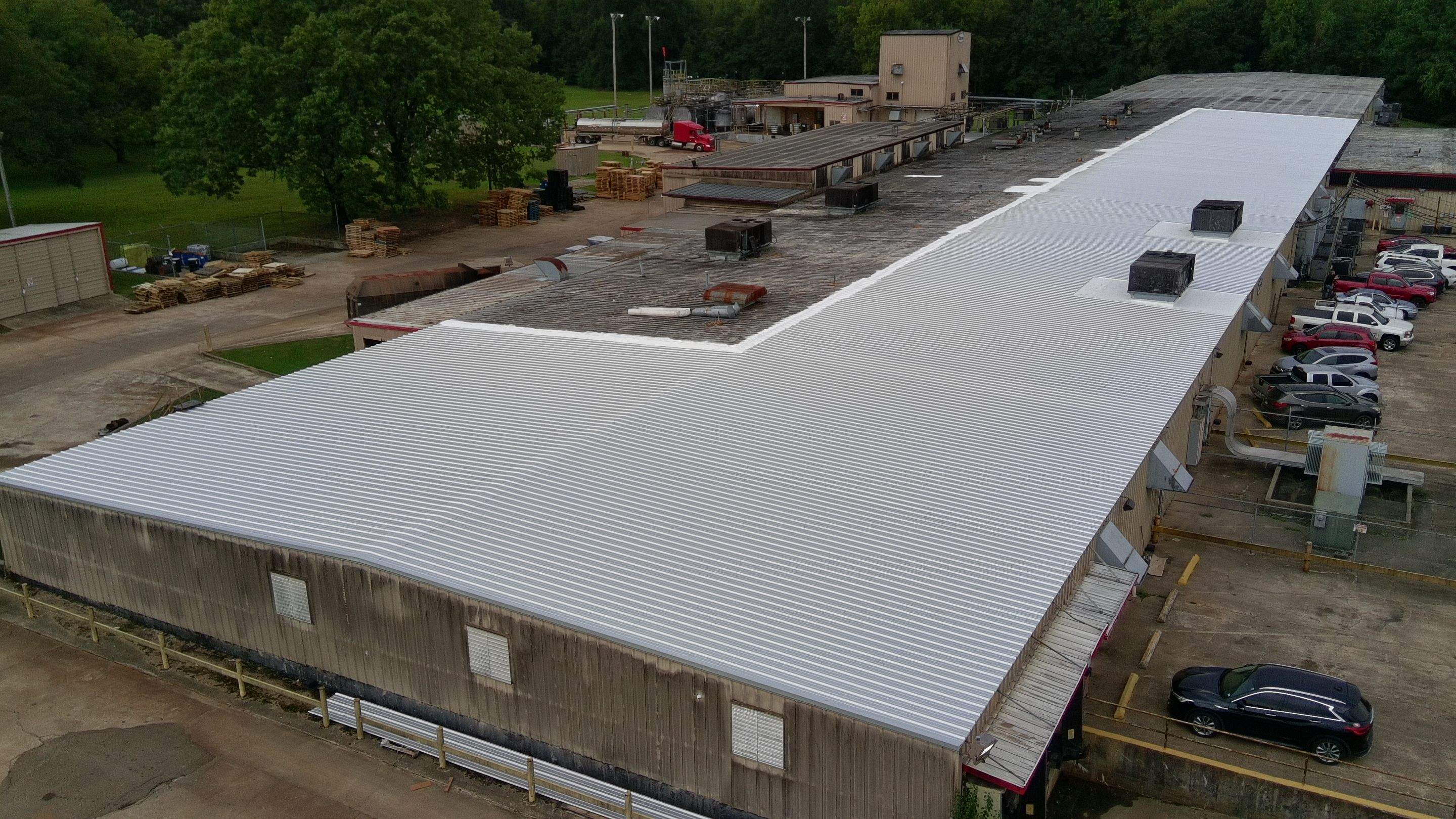 For this project, we completed a full removal and replacement of a section of an existing metal roofing system to improve performance, insulation, and long-term durability. We began by removing the old metal panels, foam inserts, coatings, and fiberglass batt insulation. This allowed us to start fresh with a clean, properly prepared structure. Next, we installed new 3” fiberglass batt insulation over the existing Z-purlin framing to improve thermal performance and help regulate interior temperatures. The roof was then finished with new 26-gauge R-Panel metal roofing, installed according to manufacturer specifications. All seams and side laps were sealed with tacky tape, and manufacturer-approved fasteners were used to ensure secure attachment and long-term performance. To complete the system, we installed new eave trim, rake edge metal where needed, and a newly formed ridge cap at the transition between the new metal roof and the adjoining foam roof. Foam was reapplied at the transition area to properly tie into the existing system. When the adjacent foam roof is replaced in the future, the ridge cap will be upgraded to a continuous system to maintain long-term integrity. This project delivers a stronger, cleaner, and more energy-efficient roofing system built for long-term commercial performance.