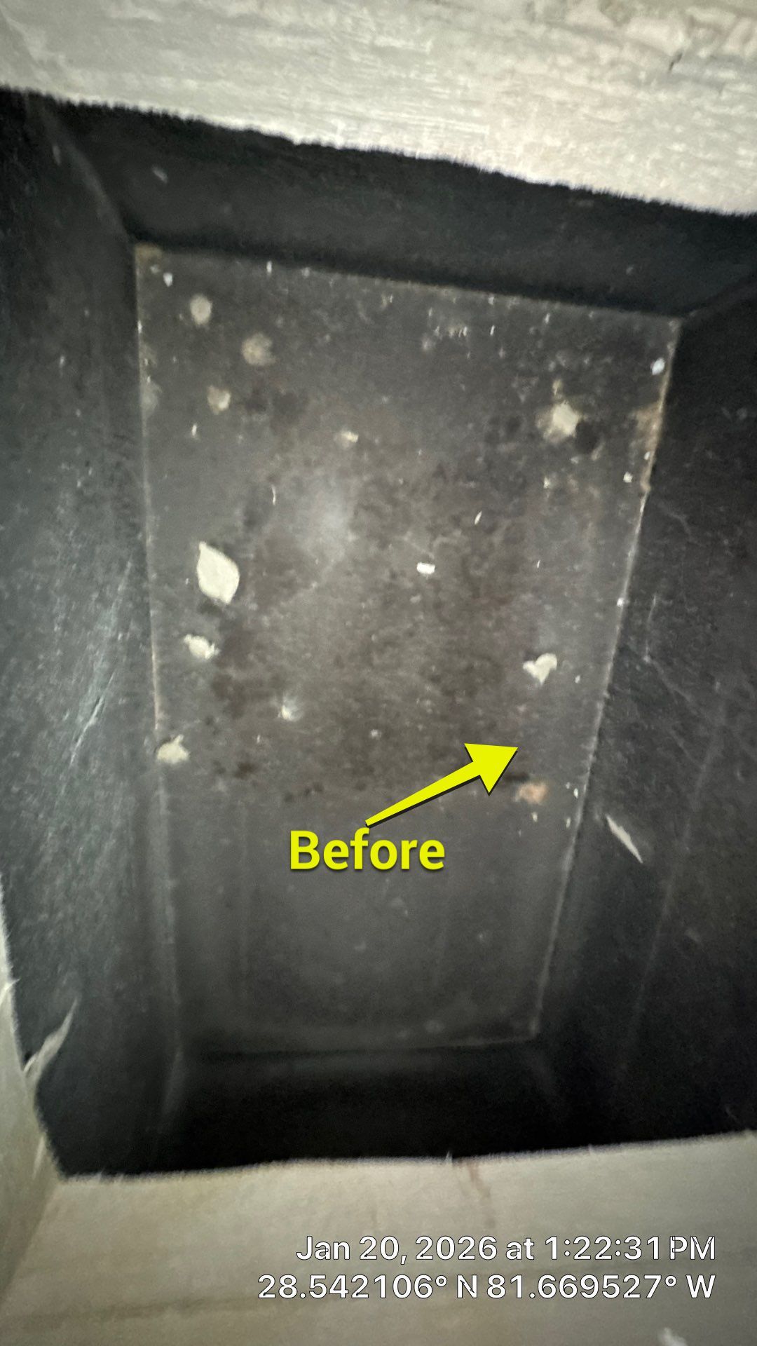We recently completed air duct cleaning and dryer vent cleaning at a residence in Clermont, where we encountered significant dust buildup throughout the ductwork. Using our high-powered vacuum truck system, we successfully extracted embedded debris—clearly visible in the before-and-after photos. To ensure maximum suction and protect the home during service, we sealed off vents in accordance with our standard cleaning protocol. Following the cleaning, we applied a fogging treatment to sanitize the system and support healthier indoor air quality. The dryer vent on the rooftop exhaust vent showed a substantial buildup of lint. This type of accumulation can restrict airflow and increase fire risk if left unaddressed. We used our high-pressure, compressed air system to thoroughly remove lint, debris, and any nesting materials from the entire exhaust line. This process restores proper airflow and enhances dryer efficiency, helping reduce energy costs. Before-and-after photos were provided to demonstrate the effectiveness of our cleaning method. Since most Florida homes vent through the roof, we recommend annual dryer vent cleaning to maintain safety, improve performance, and prevent costly issues. For best results, we recommend air duct servicing every three years.