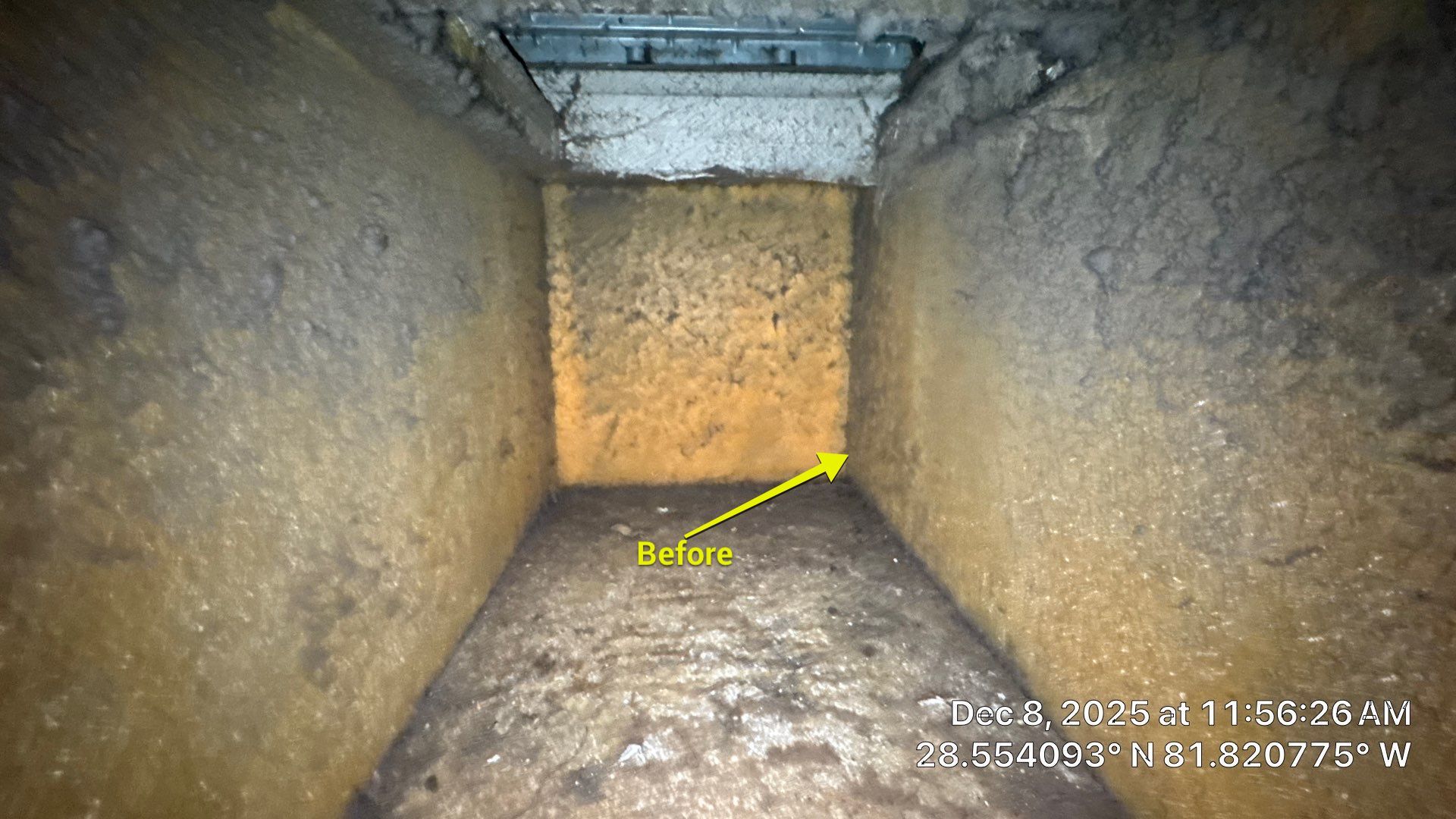 We recently completed an air duct cleaning at a home in Groveland. During our inspection, we found significant dust buildup inside the air handler unit along with areas of possible microbial growth. Using our high-powered vacuum truck, we removed the majority of debris from the system. To protect the home and ensure strong suction, we sealed off vents as needed. This step helped contain dust and maintain a clean environment throughout the service. At the conclusion of cleaning, we applied a sanitizing fogger to disinfect the system. Our before-and-after photos clearly show the effectiveness of our equipment in restoring clean airflow and improving system performance. For best results, we recommend professional air duct cleaning every three years. Routine maintenance reduces dust buildup, enhances airflow, and supports a healthier living space