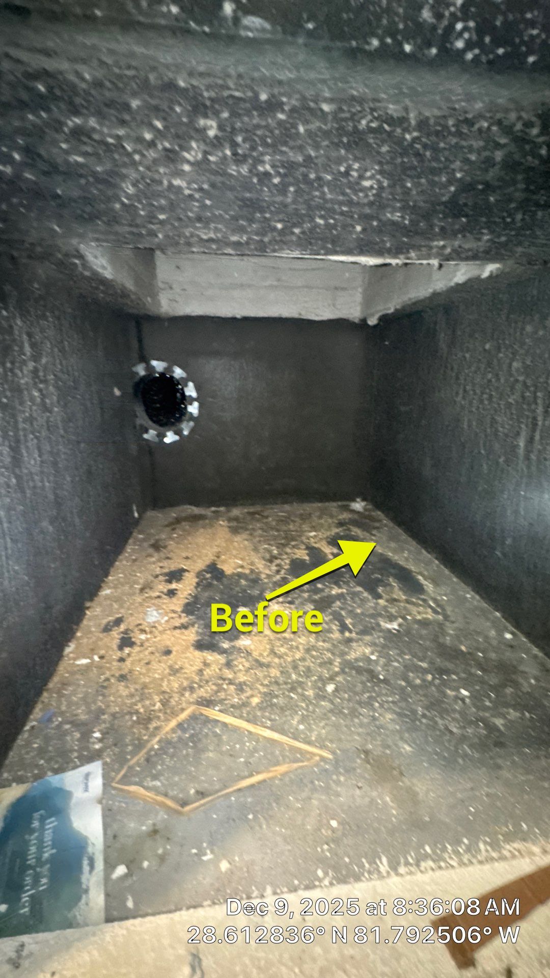 We recently completed an air duct cleaning for a home in Groveland. During our inspection, we discovered heavy dust accumulation inside the air handler unit along with areas showing possible microbial growth. Using our high-powered vacuum truck, we thoroughly removed debris throughout the system. To protect the home and maximize suction, we sealed off vents as needed. This step helped contain dust and maintain a clean environment during the service. Once cleaning was complete, we applied a sanitizing fogger to disinfect the system. Our before-and-after photos highlight the effectiveness of our equipment in restoring clean airflow and improving overall system performance. For long-term results, we recommend scheduling professional air duct cleaning every three years. Routine maintenance reduces dust buildup, improves airflow, and supports a healthier living space.