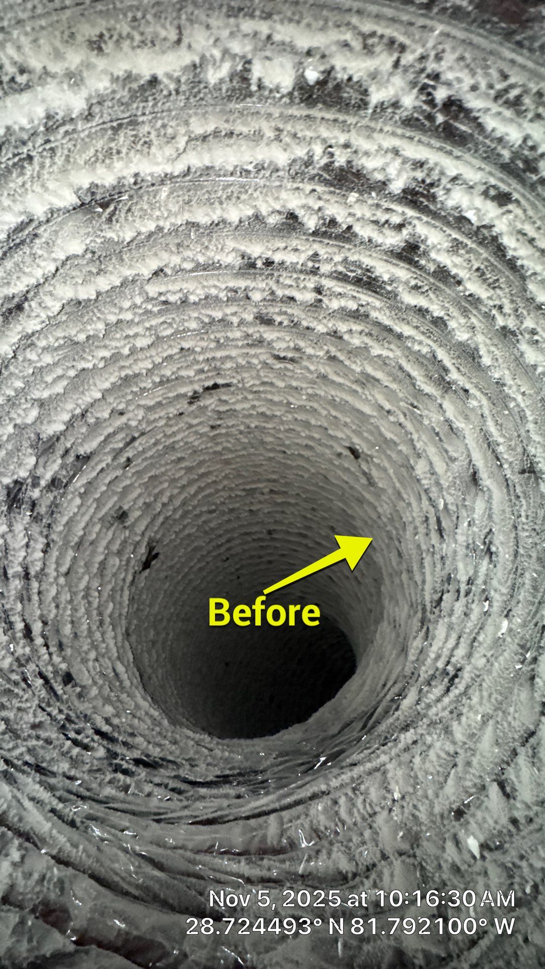 We completed an air duct cleaning at a residence in Howey in the Hills. Upon inspection, the air handler unit showed significant dust accumulation. Using our high-powered vacuum truck, we successfully removed the majority of debris. Before-and-after photos clearly demonstrated the effectiveness of our equipment in restoring clean airflow. To ensure optimal suction and protect the home during the cleaning process, we sealed off vents as needed. This step also helped contain dust and maintain a clean environment throughout the service. Air ducts are recommended to be serviced every three years to improve airflow, enhance indoor air quality, and prevent dust buildup.
