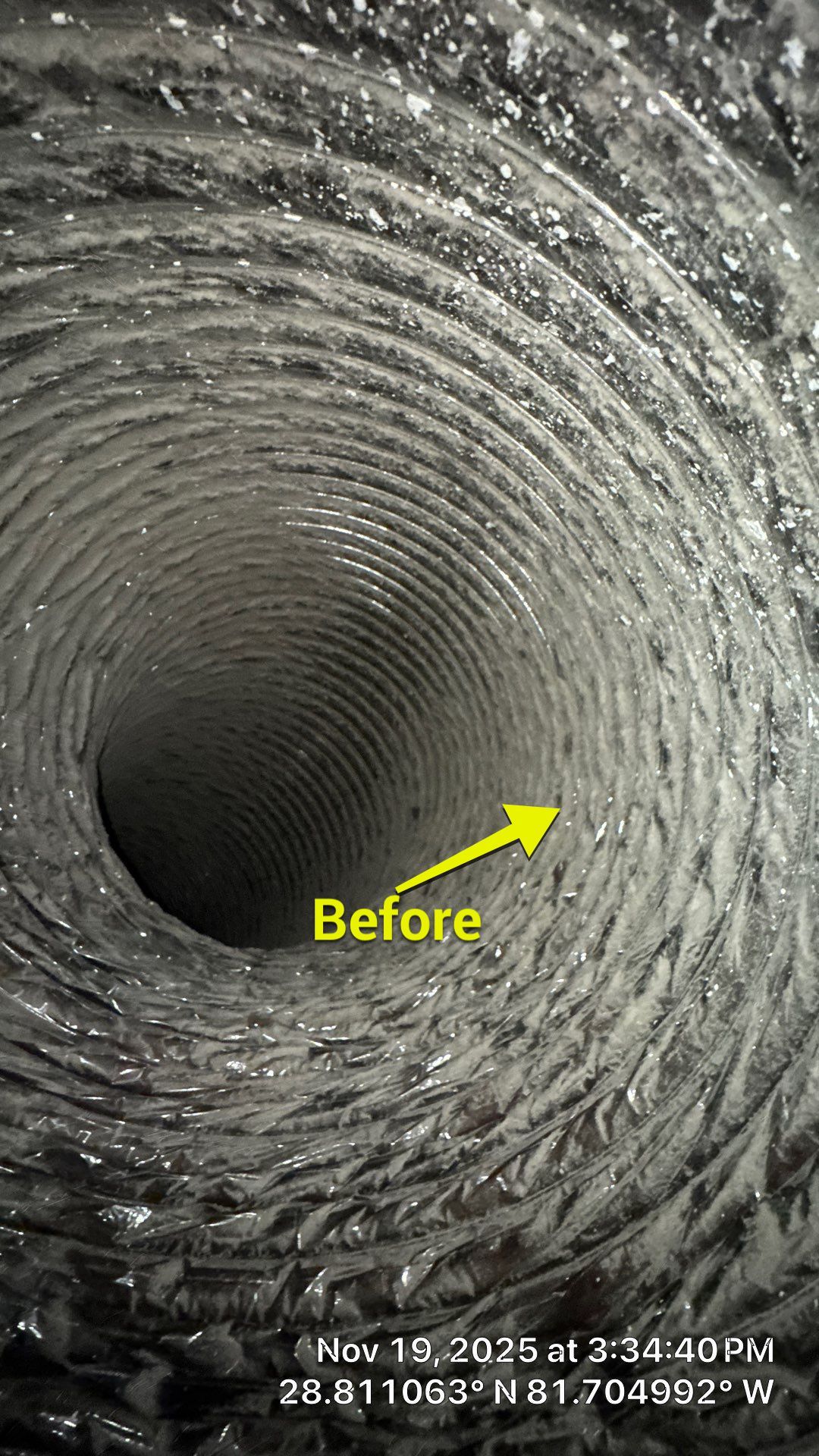 We recently completed a full-system air duct cleaning at a residence in Tavares. Our initial inspection revealed heavy dust buildup throughout the ductwork, air handler, and blower fan—conditions that can compromise airflow and indoor air quality. To resolve this, we deployed our high-powered vacuum truck to extract embedded debris from the entire system. Following our standard protocol, all vents were sealed to maximize suction and protect the home during the cleaning process. After clearing the system, we applied a sanitizing fog treatment to help neutralize lingering contaminants and support a healthier indoor environment. Before-and-after photos were provided to showcase the dramatic improvement in airflow and system cleanliness. Maintenance Tip: For cleaner air, reduced dust accumulation, and better HVAC performance, we recommend professional air duct cleaning every three years.