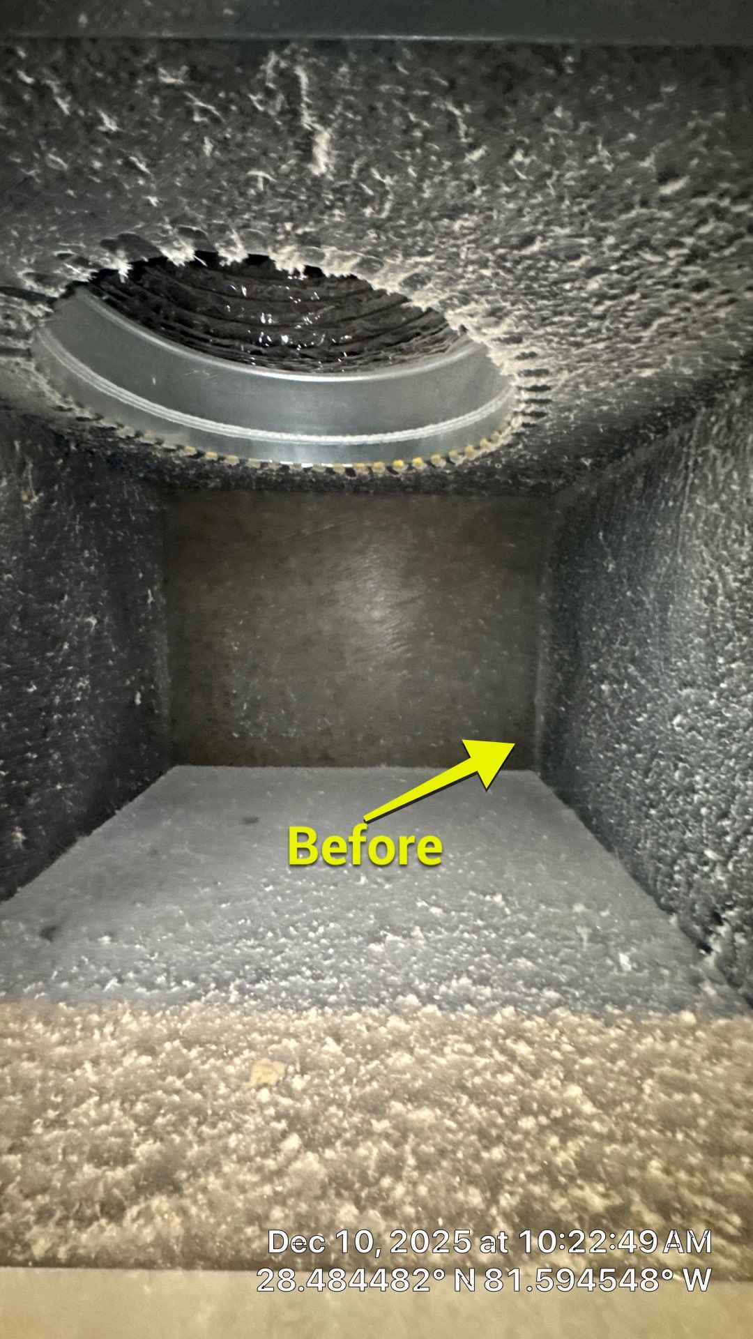 Our team performed a comprehensive air duct cleaning at a home in Windermere. During the initial inspection, we identified significant dust buildup within the air handler unit. Using our high-powered vacuum truck, we removed the majority of accumulated debris, restoring cleaner airflow throughout the system. Before-and-after photos highlighted the effectiveness of our equipment and process. To ensure maximum suction and protect the home during service, we sealed off vents as needed. This precaution also helped contain airborne dust and maintain a clean environment throughout the cleaning. For optimal performance and indoor air quality, air ducts should be professionally cleaned every three years. Routine maintenance helps prevent dust accumulation and supports healthier airflow