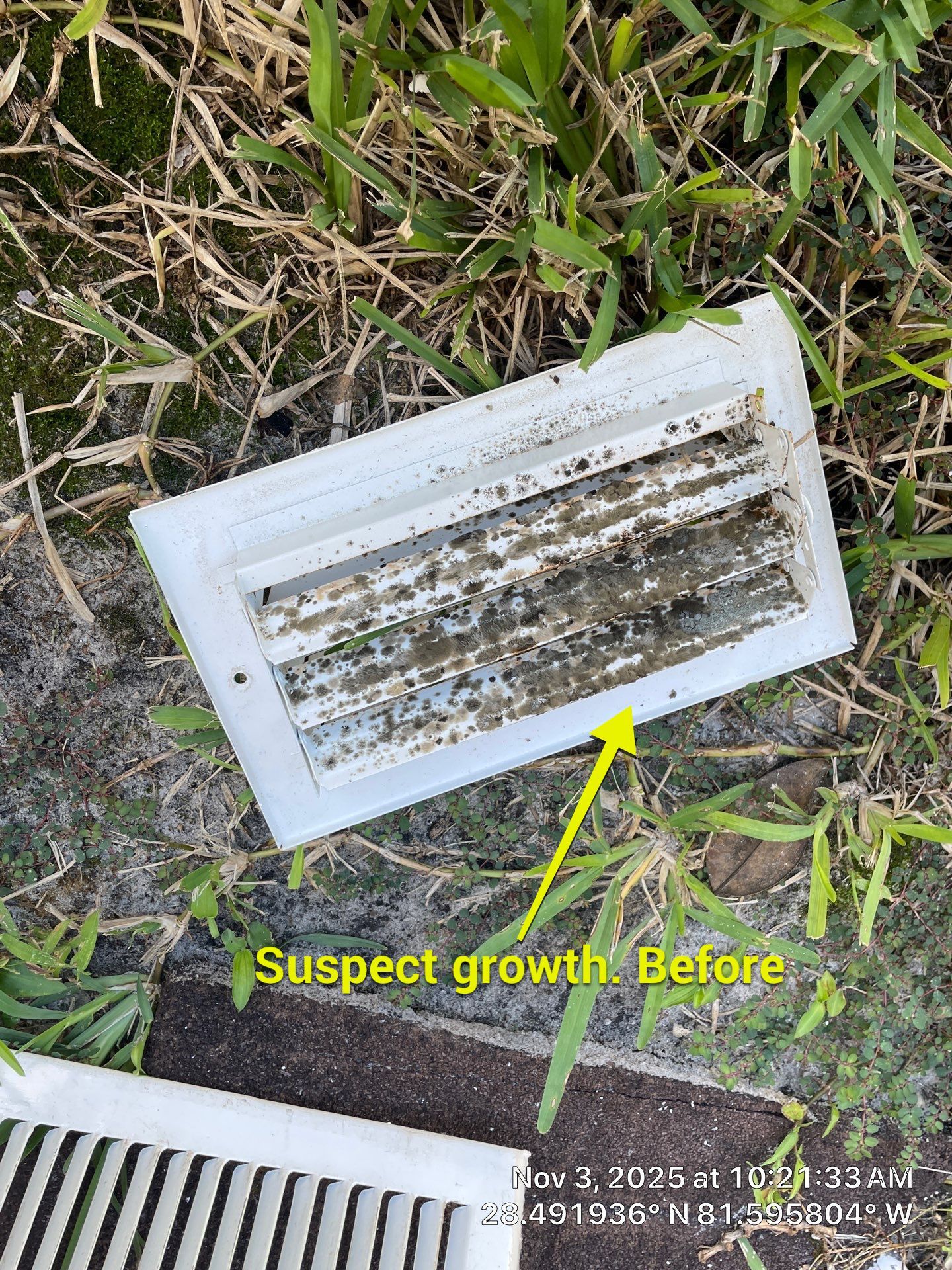 We performed a comprehensive air duct cleaning at a home in Windermere. During our initial inspection, we observed substantial dust buildup within the air handler unit, along with suspect microbial growth around several vents. To address these concerns: • We removed the affected vents and treated them with Decon30, a botanical disinfectant, to sanitize and eliminate visible growth. • Our high-powered vacuum truck was used to extract the majority of debris from the ductwork. • Before-and-after photos clearly showcased the effectiveness of our equipment in restoring clean airflow. To maintain a clean environment and ensure optimal suction throughout the process, we sealed off vents as needed. This precaution helped contain dust and protect the home during service. Air ducts should be professionally cleaned every three years to support healthy airflow, improve indoor air quality, and reduce dust accumulation
