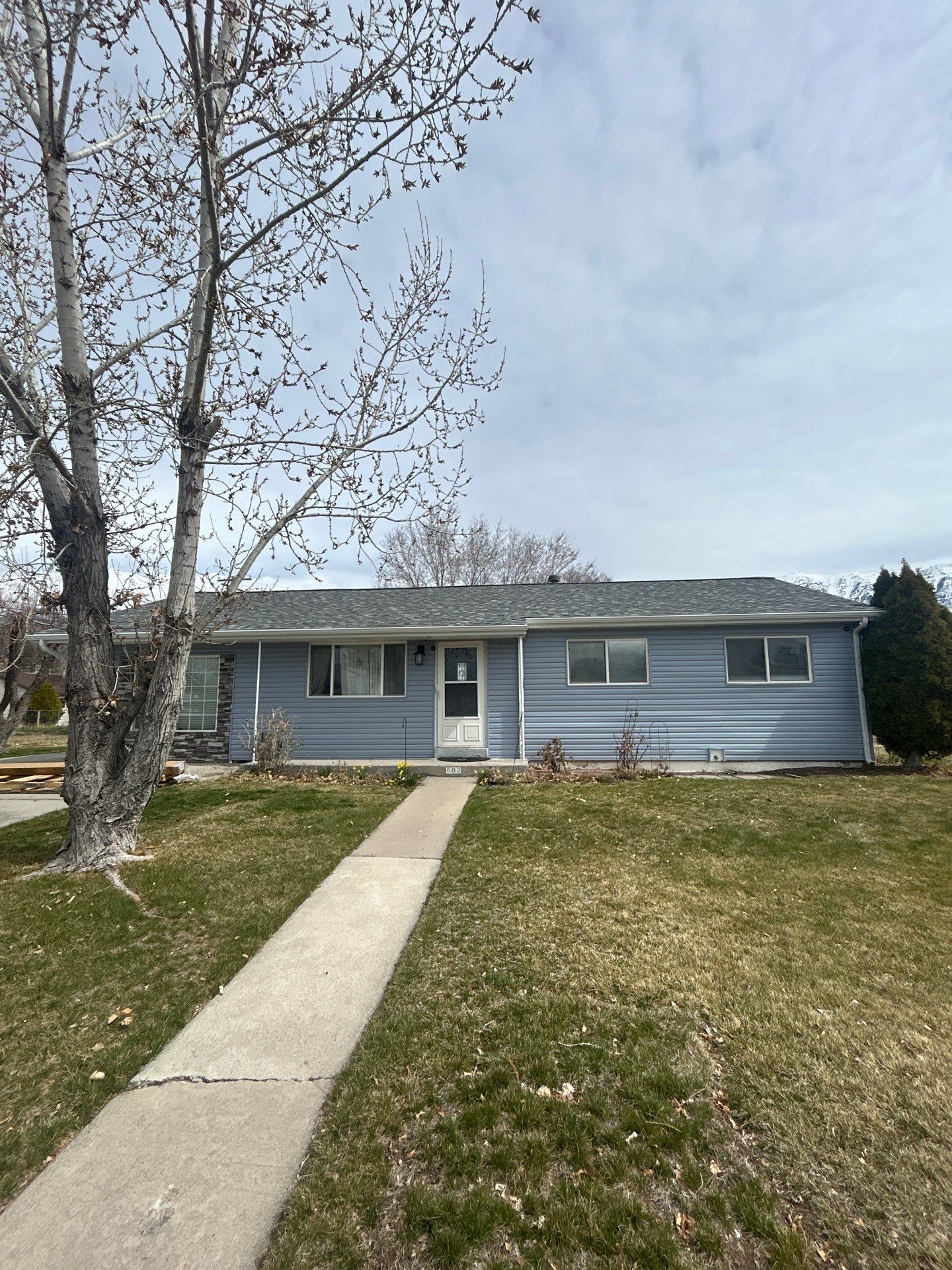 Complete exterior update in Orem. We completely removed the old siding and replaced it with durable, high-quality HeartTech vinyl to boost the home's curb appeal and weather protection. Main Siding: Premium HeartTech Double 4" Dutchlap Vinyl Siding in Premium Blue. Trim & Details: Matching Premium Blue corner posts and J-channel, accented with new White Octagonal Gable Vents. Additional Upgrades: Complete installation of custom White Aluminum Fascia and a brand new Seamless Gutter system with downspouts.