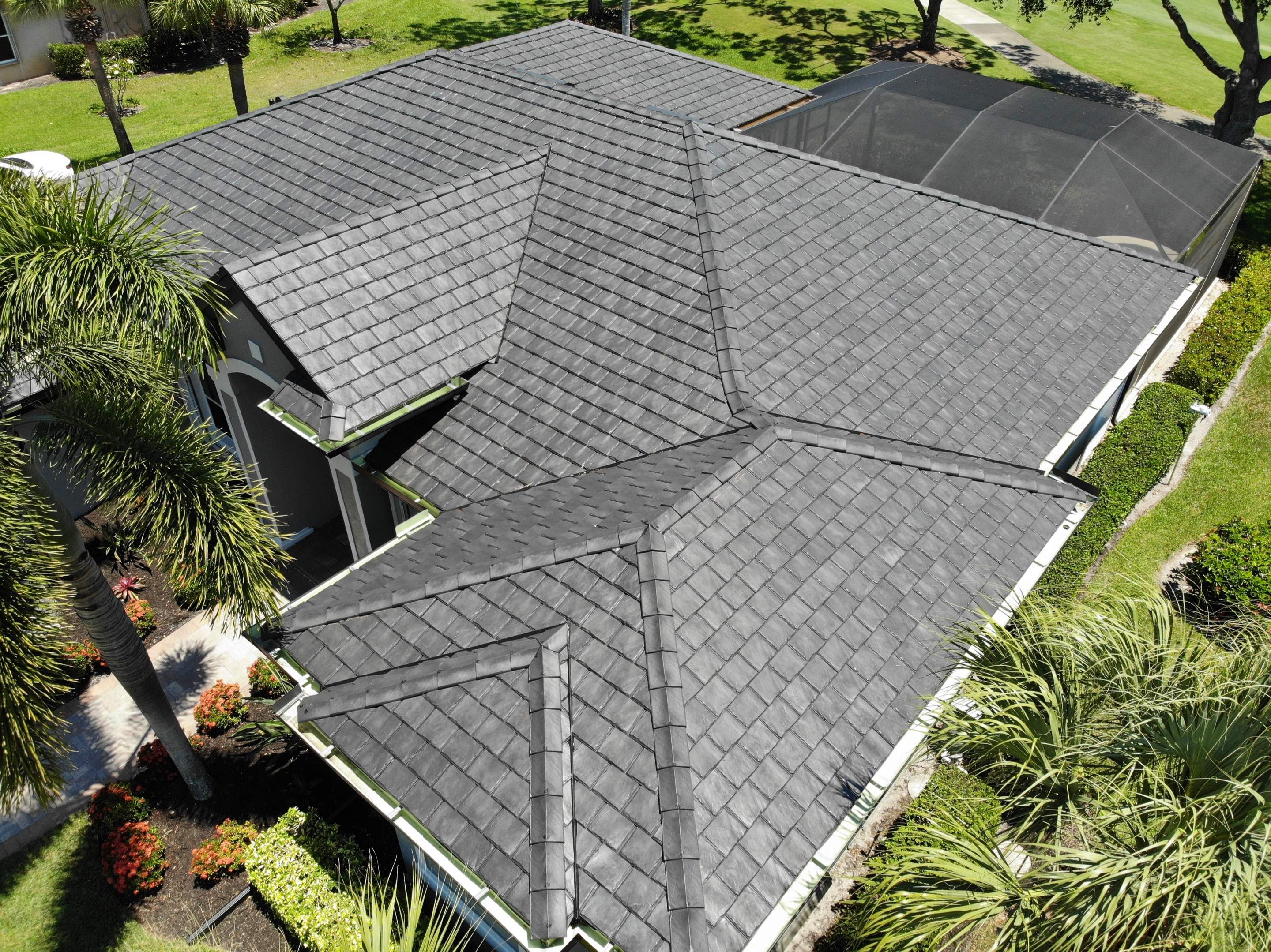 We completely upgraded this home with an unbreakable composite Slate. The details are absolutely stunning and the strength and protection are even more incredible. With our method of installing this slate roof we have a: Class A Fire Rating Class 4 Impact Rating Practically Maintenance Free Lightweight a 50 yr Material Warranty We installed a two ply underlayment system and with two stainless steel screws on each slate. This extremely protective system is expected to last over 50 years while maintaining the gorgeous Slate aesthetic for a timeless look.