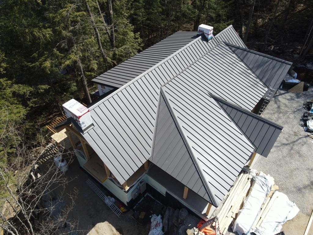 This new home construction project included a full residential standing seam metal roof installation built for clean lines and long-term performance. We installed a 24 ga standing seam system using 16” panels for a durable, low-maintenance roof designed to handle harsh weather. To control snow release and protect key areas below, we added an S5 snow guard system.