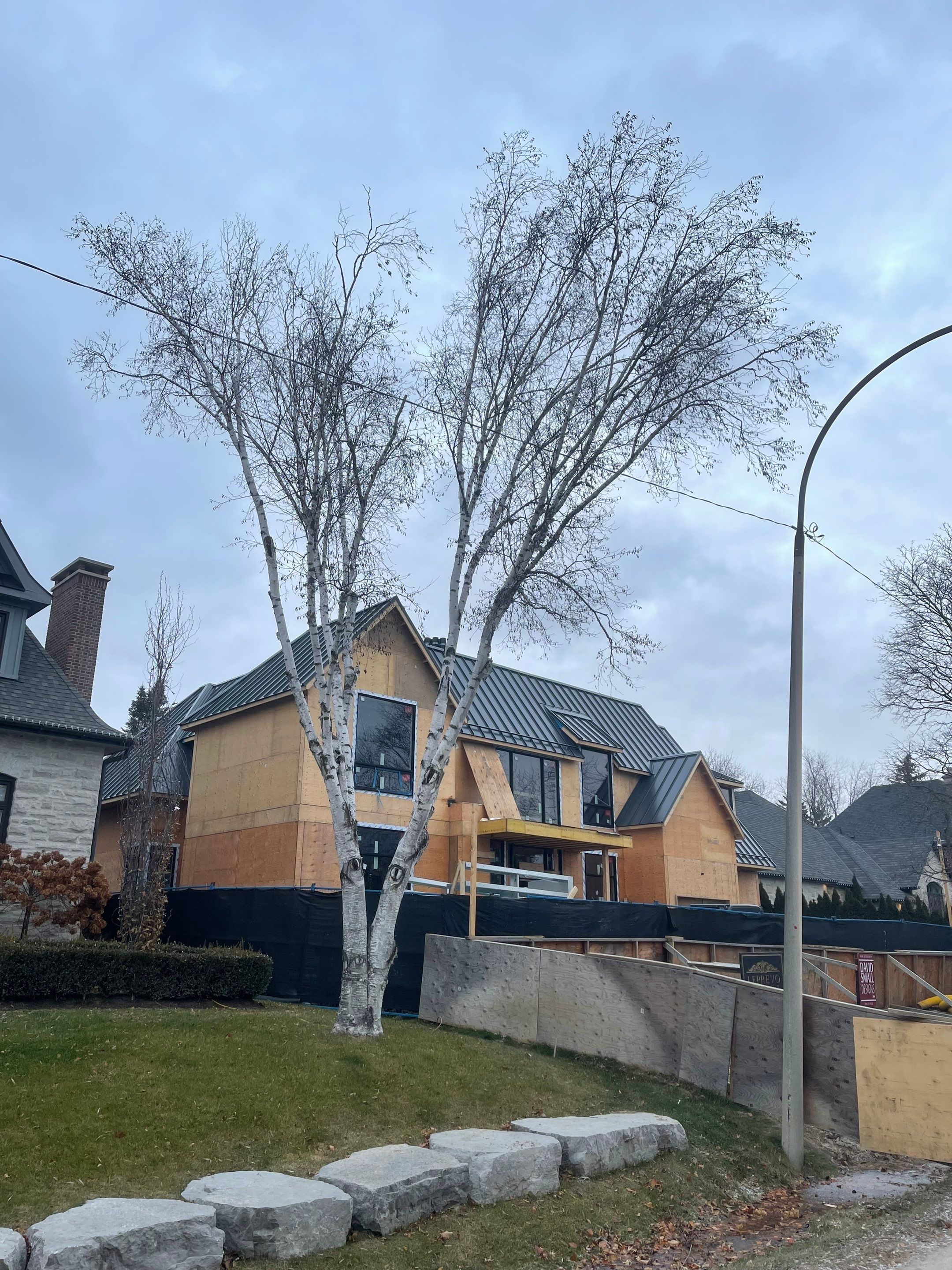 This new home construction project included a complete roofing package with both sloped and flat roof systems, plus finished exterior edges. We installed a 24 ga standing seam metal roof using 16” panels in Iron Ore, detailed with custom coping and flashing to keep every transition tight and watertight. Flat roof sections were completed with Soprema modified bitumen for a durable, watertight assembly. We also installed the full soffit, fascia, and eavestrough package, and integrated metal cladding for a consistent exterior finish. To control snow release and protect key areas below, we added an S5 snow guard system.