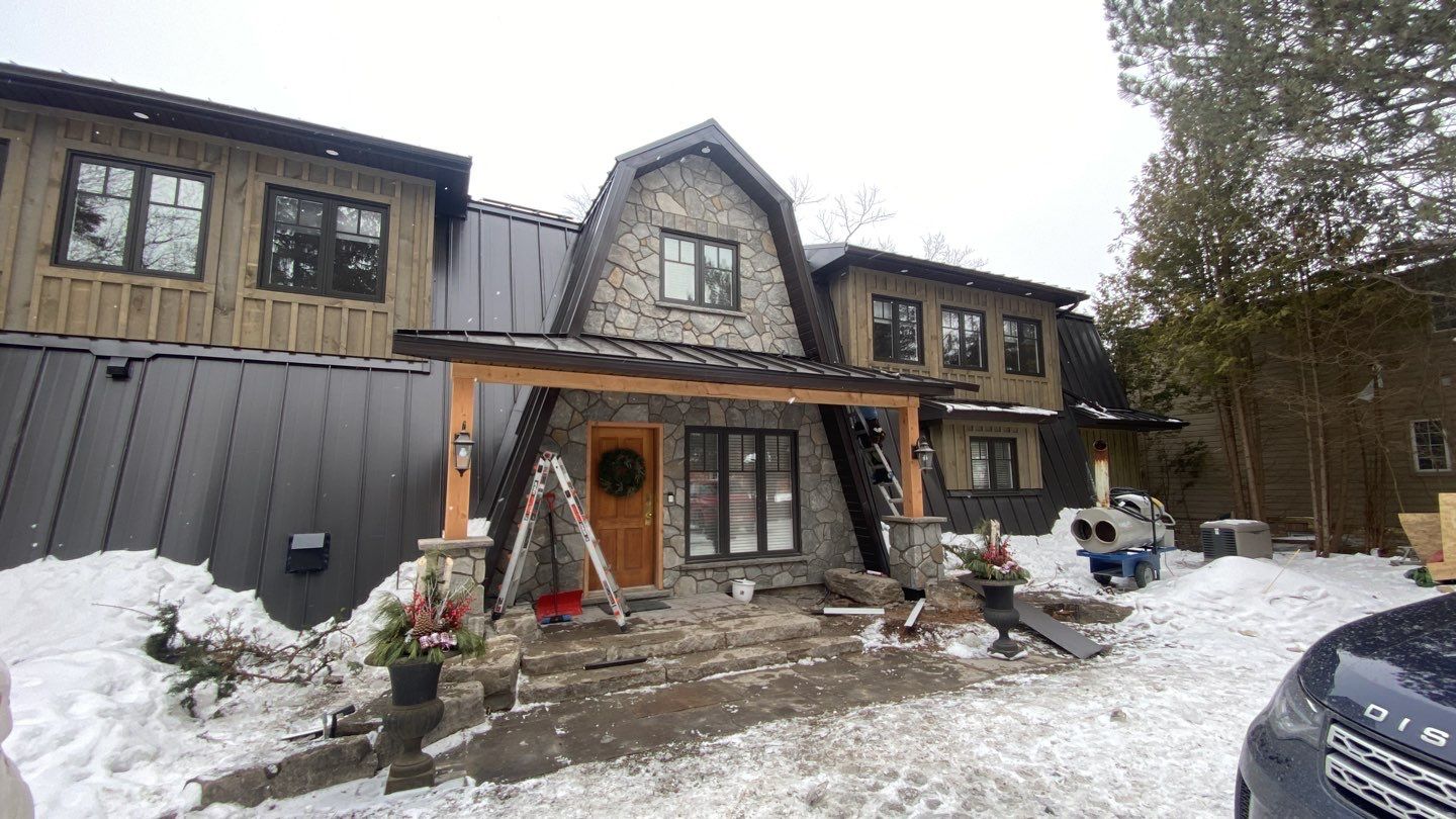 This project was a full residential roof replacement using a standing seam metal system designed for long-term protection and a clean finish. We installed 24 ga, 16” standing seam panels in Dark Brown for a strong, low-maintenance roof that complements the home’s exterior. To control snow release and protect key areas below, we installed an S5 snow guard system.