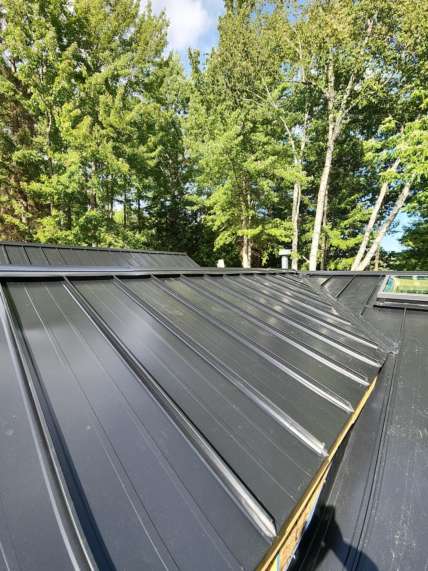 This project was a full residential roof replacement with a complete exterior edge upgrade. We installed a 24 ga standing seam metal roof using 16” panels in Textured Dark Graphite for a clean, high-end finish built for decades of protection. We also installed new soffit, fascia, and eavestrough to sharpen the edges, support proper airflow, and improve water control. To reduce sliding snow and protect key areas below, we added an S5 snow guard system.