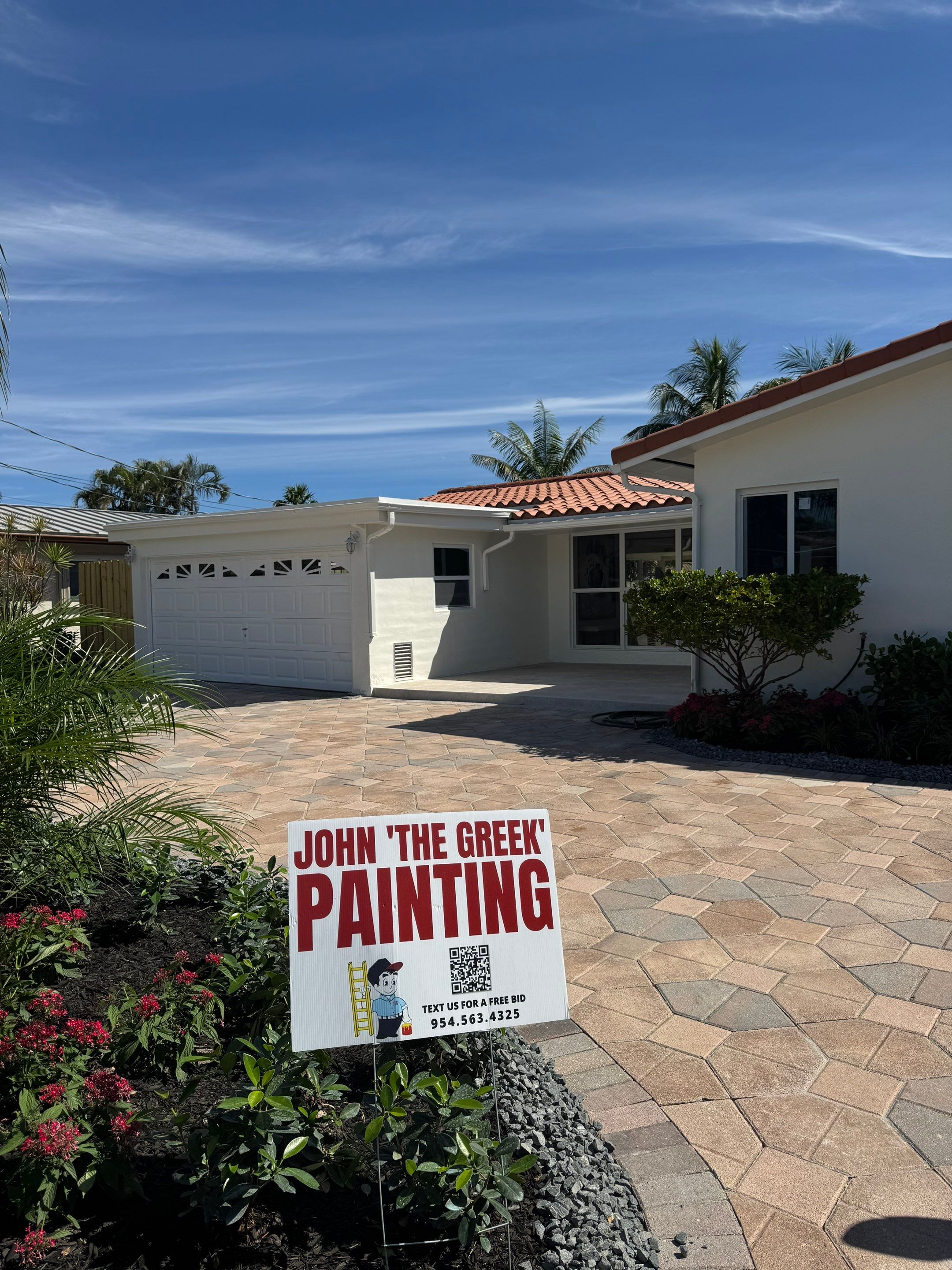 This job included a full exterior house painting, pressure cleaning and staining the pool deck, patching stucco cracks, caulking windows, and repairing rotted wood fascia for a refreshed and durable finish.