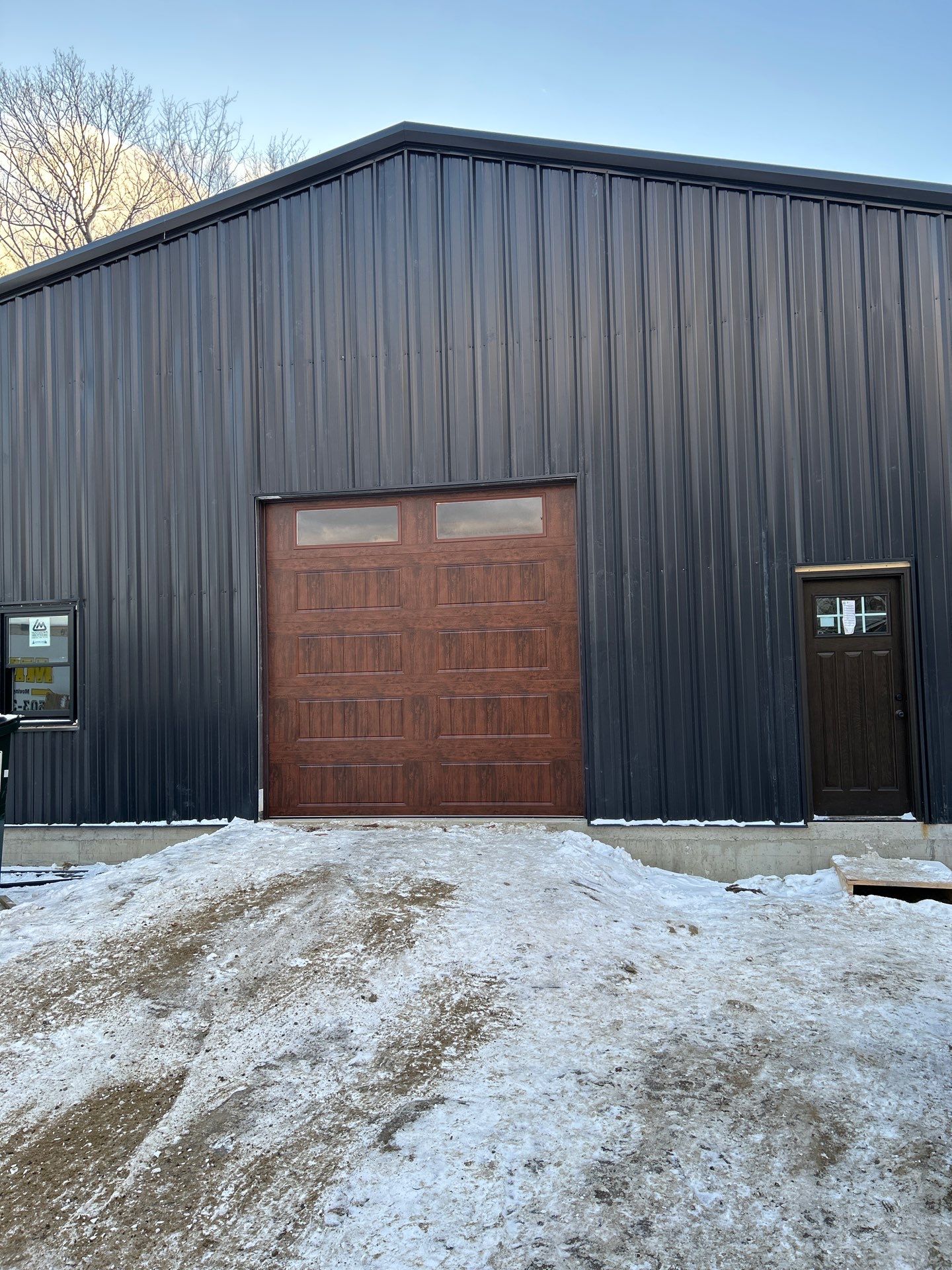 Installation by Eric and Josh Clopay 10'x10' Gallery Steel Garage Door Panel Style: Long Panel Model: GD1LU Panel Color: Ultra Grain Oak Walnut Window: Plain Long Windows, Top Section