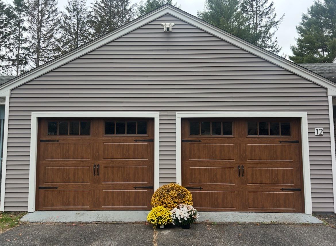 Installation by Mark Clopay 9'x7' Gallery Steel Garage Doors Panel Style: Long Panel Model: GD1LP Panel Color: Ultra gain oak dark finish
