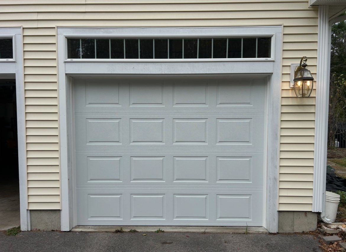 Expert installation by Mark K. of the Raynor 9'x7' Encore Door, featuring a Colonial-style panel, Model EN200, in a crisp White finish.