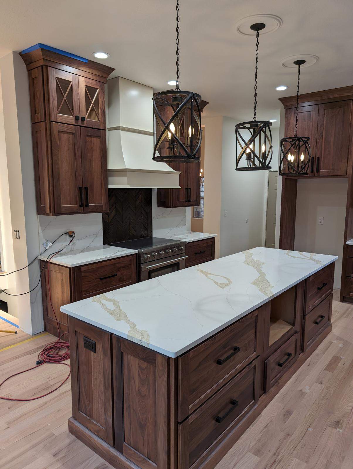 This black walnut kitchen is STUNNING. It's probably one the top 10 most beautiful kitchens we have created (and we have created hundreds of kitchens). The richness of this wood species is beyond words. Contrasted with a white quartz countertop (with walnut veining) & a beautiful off white custom hood, this kitchen will be a pleasurably space to cook. That's all for now & as always, thanks for looking.