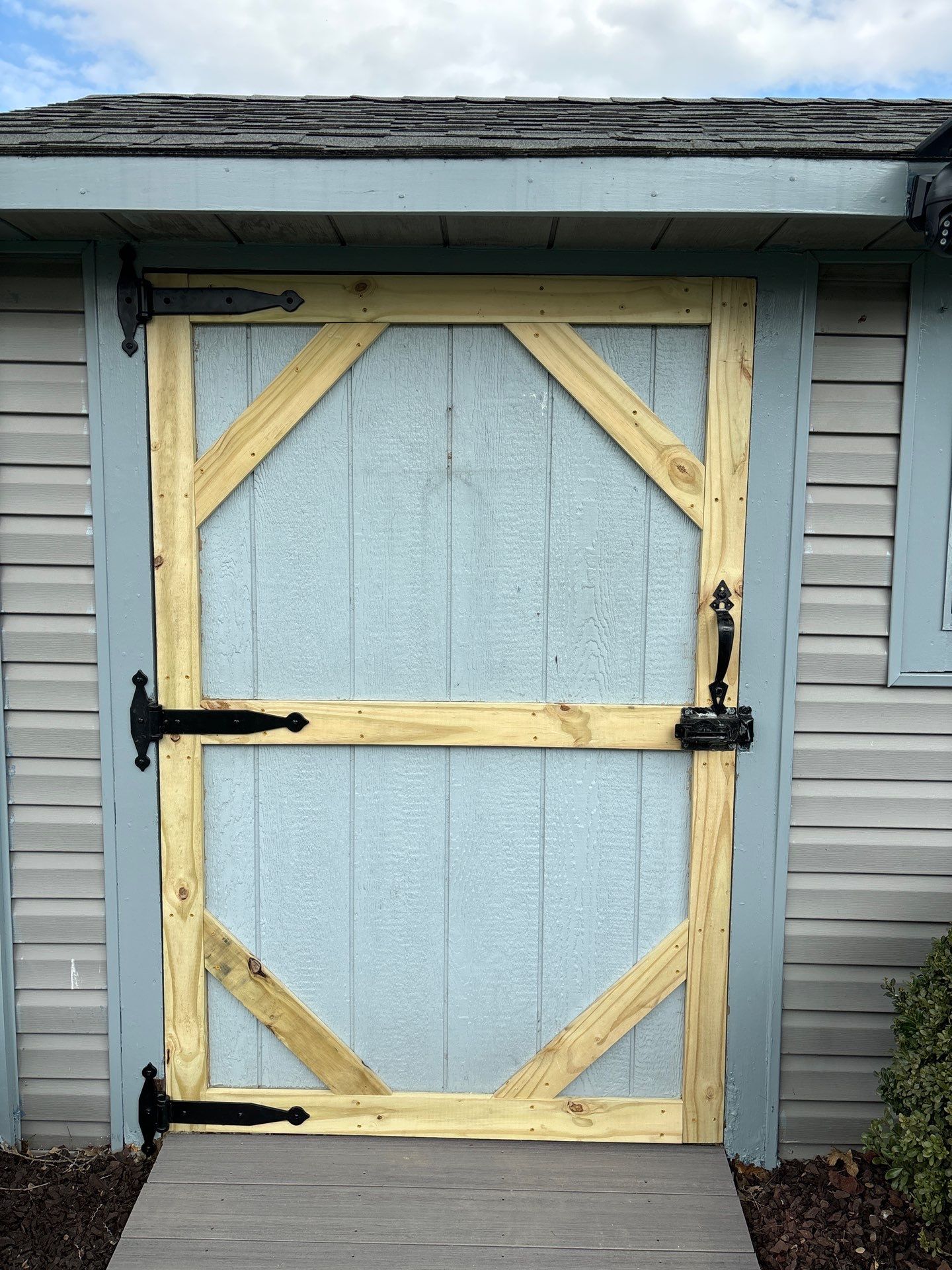 Here we were asked to make repairs to the shed door and rotted ramp.