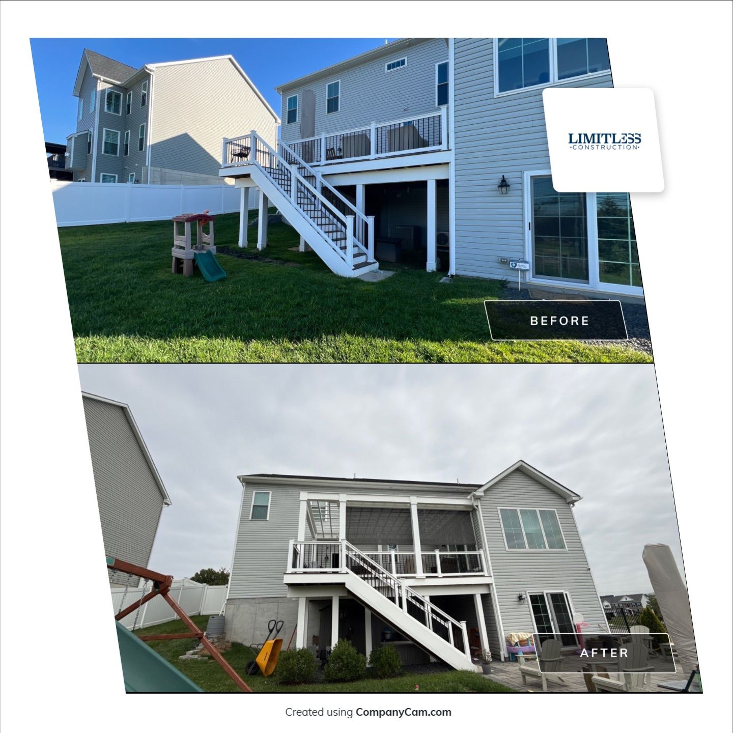 We installed a custom built vinyl pergola from Pencraft with a sun shade.