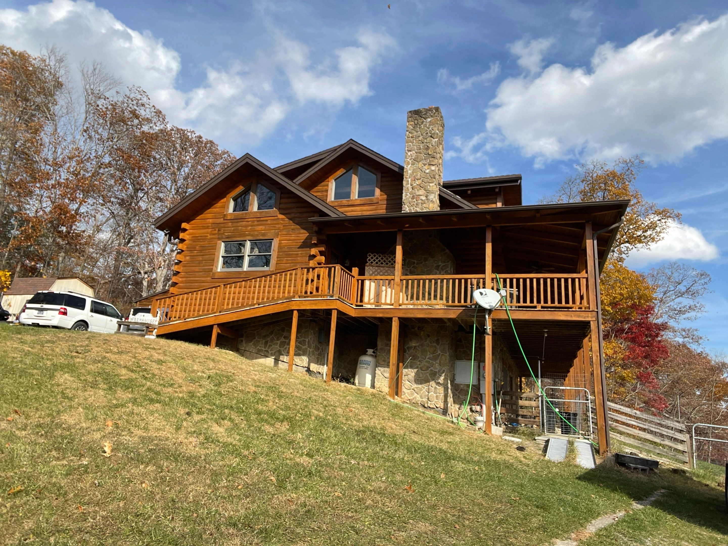 A deep exterior wash removed years of dirt and mildew, then Lifeline Ultra 7 in Carmel Satin was applied to restore a warm, even tone and deliver long-lasting UV and moisture protection.