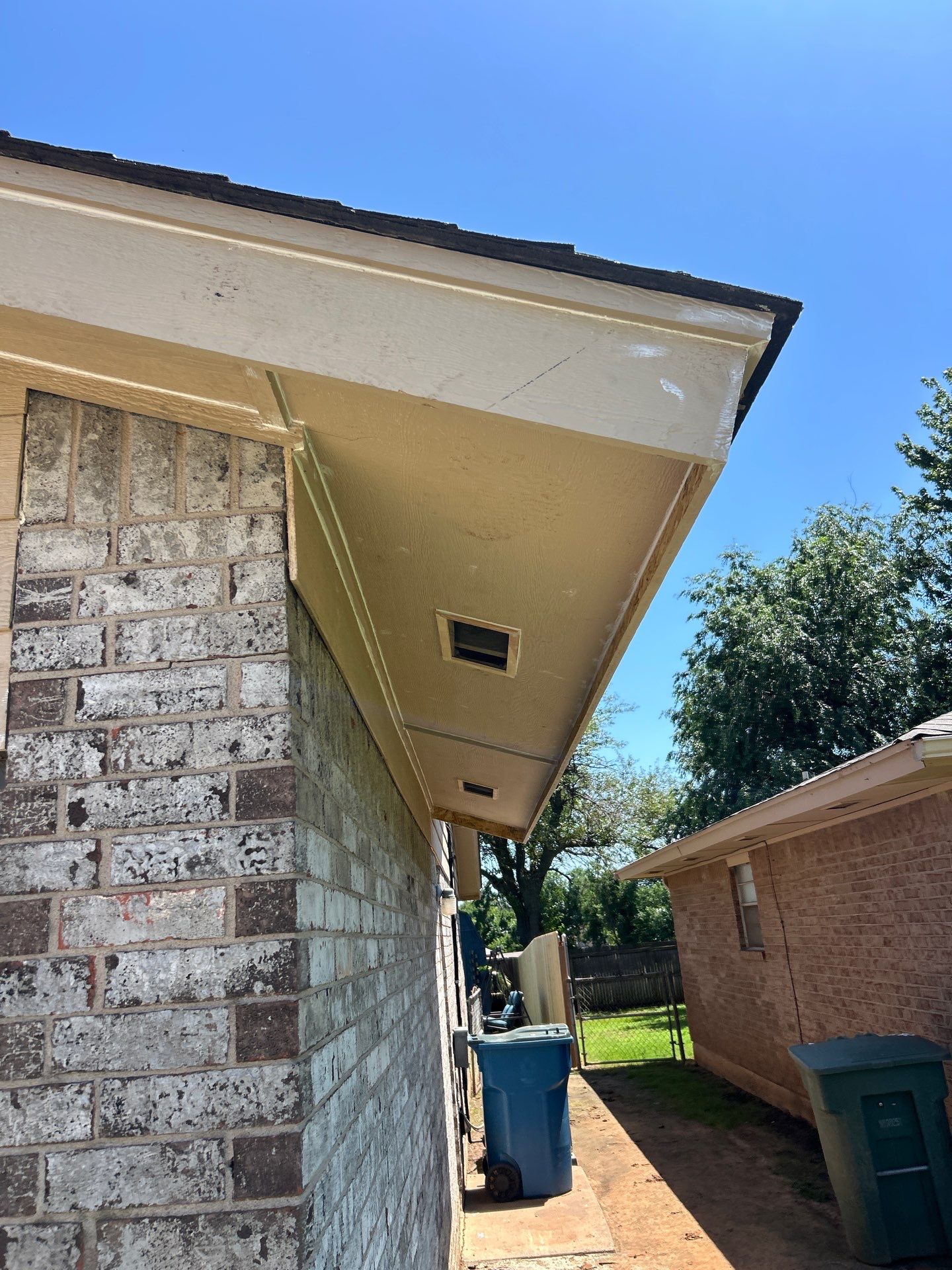 This Edmond home had old, rotted siding that needed to be fully replaced. We removed the damaged materials, installed new siding and soffit, and completed a full exterior paint job. Painting the home white instantly brightened the exterior and gave the house a clean, modern look. The transformation made the entire home feel brand new from the outside.